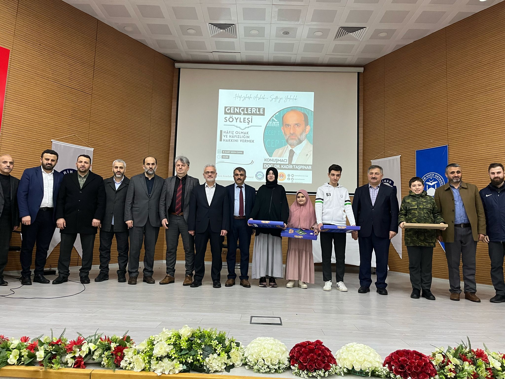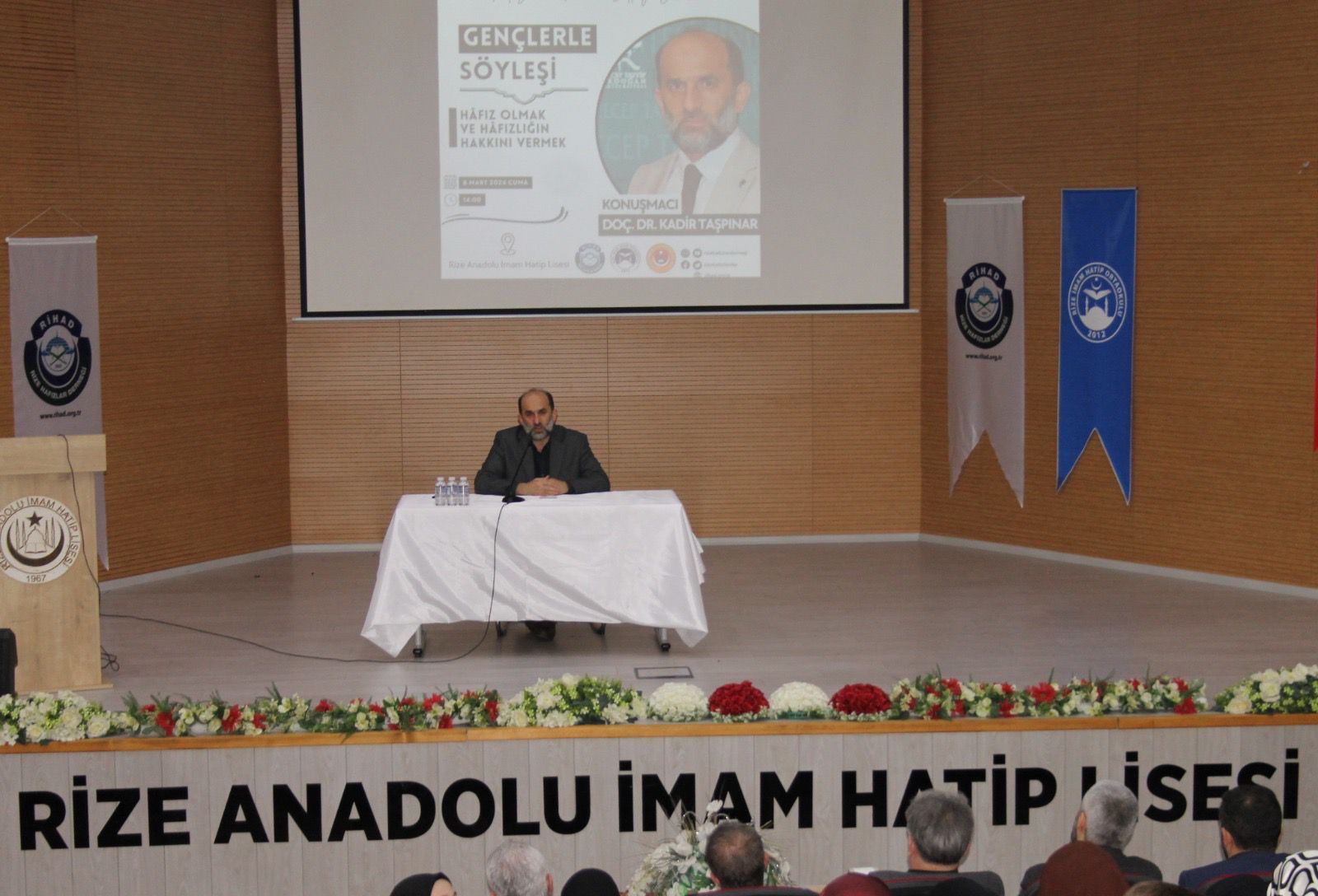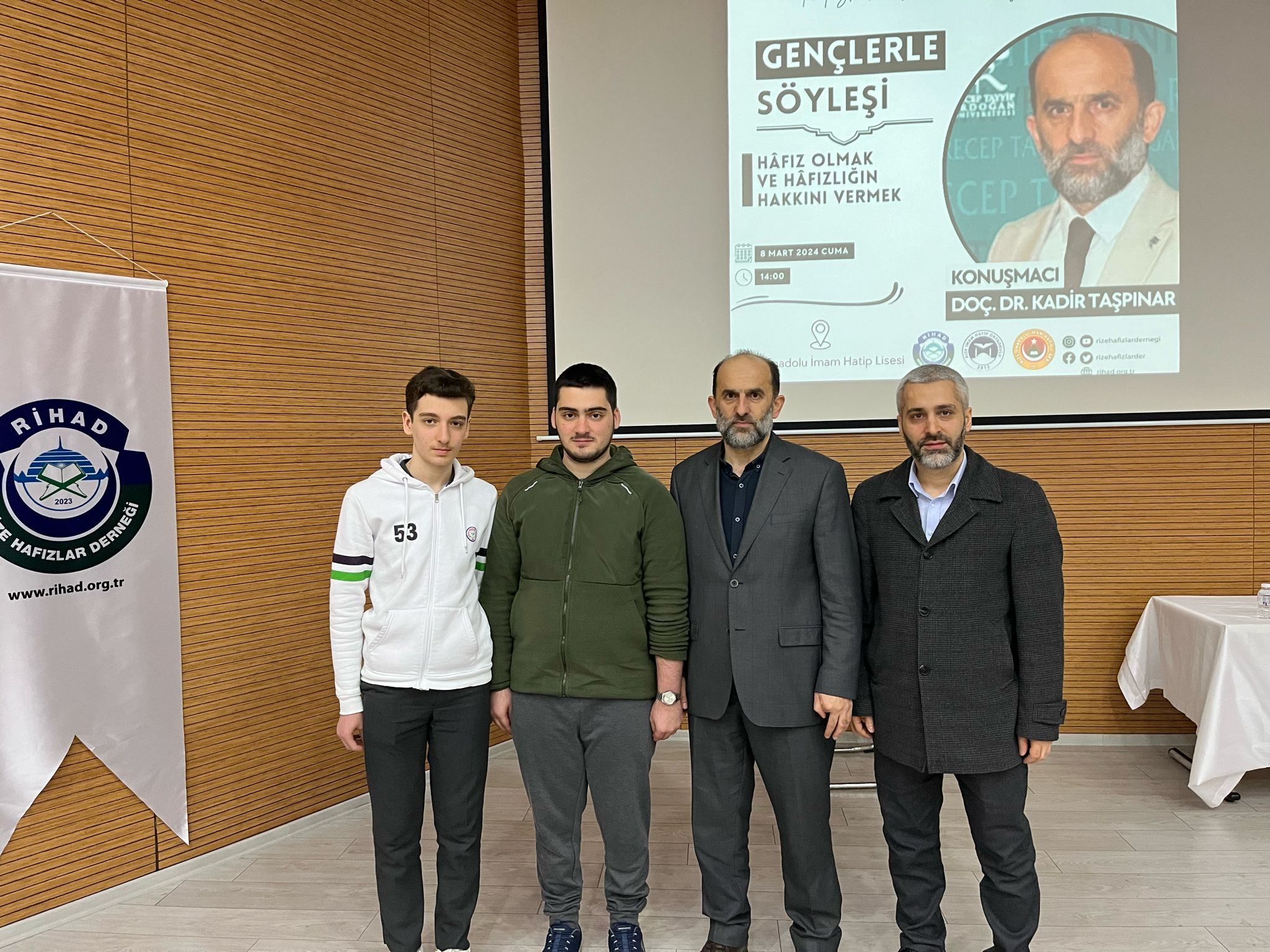 Rize Anadolu İmam Hatip Lisesinde yapılan söyleşiye Recep Tayyip Erdoğan Üniversitesi İlahiyat Fakültesi Öğretim Üyesi Doç. Dr. Kadir Taşpınar, Rize İl Milli Eğitim Müdür Yardımcısı Eyüp Furtuna, Şube Müdürü Zekeriya Özdemir, Rize Anadolu İmam Hatip Lisesi Müdürü Mustafa Kalender, Rize İmam Hatip Ortaokulu Müdürü Zeki Kuvel, Rize Hafızlar Derneği Başkanı Mustekim Kaba, Rize İHH Başkanı Fatih Emiroğlu, Rihad Yönetim Kurulu üyeleri ve Genç Hafızlar katıldı.