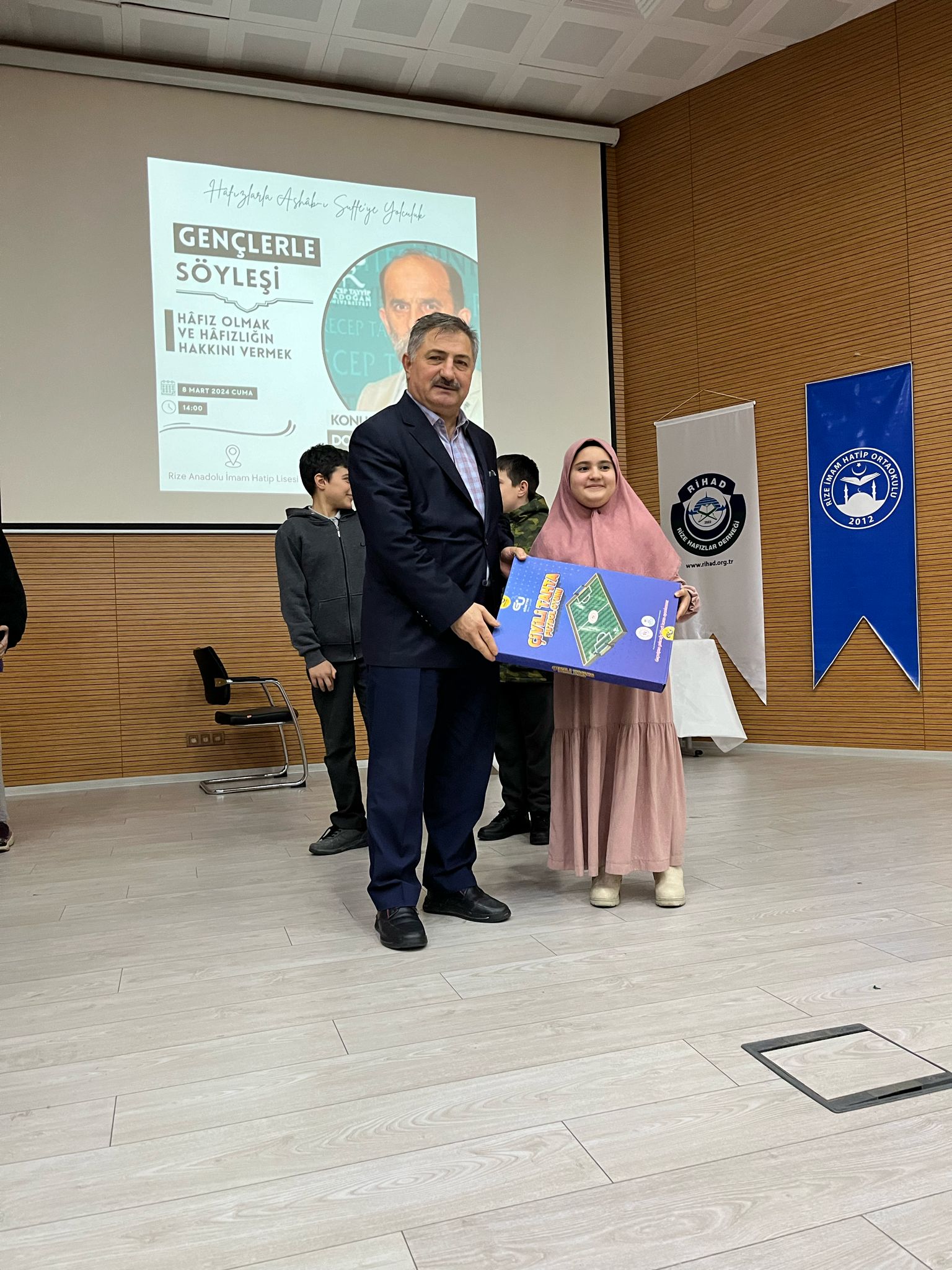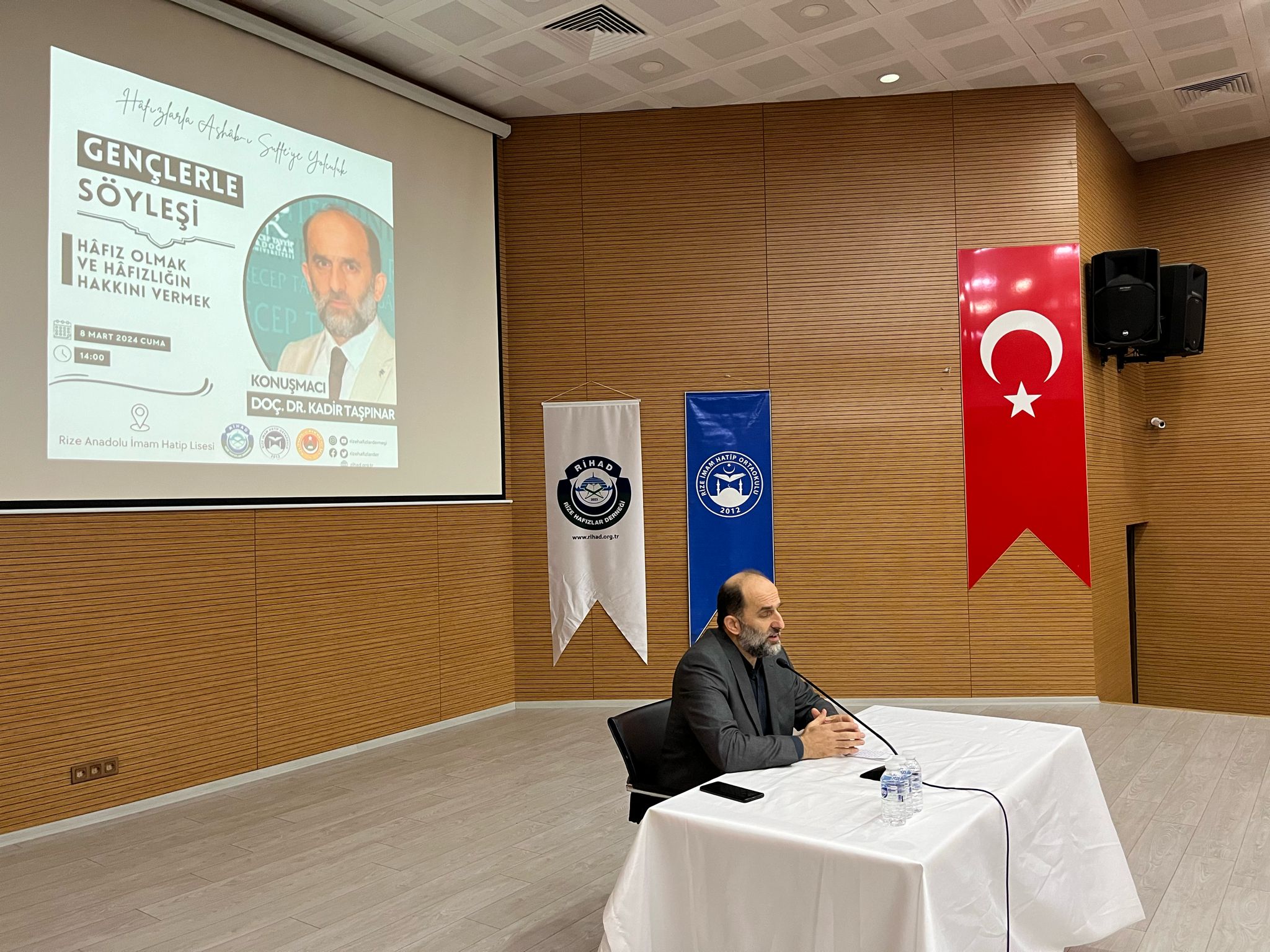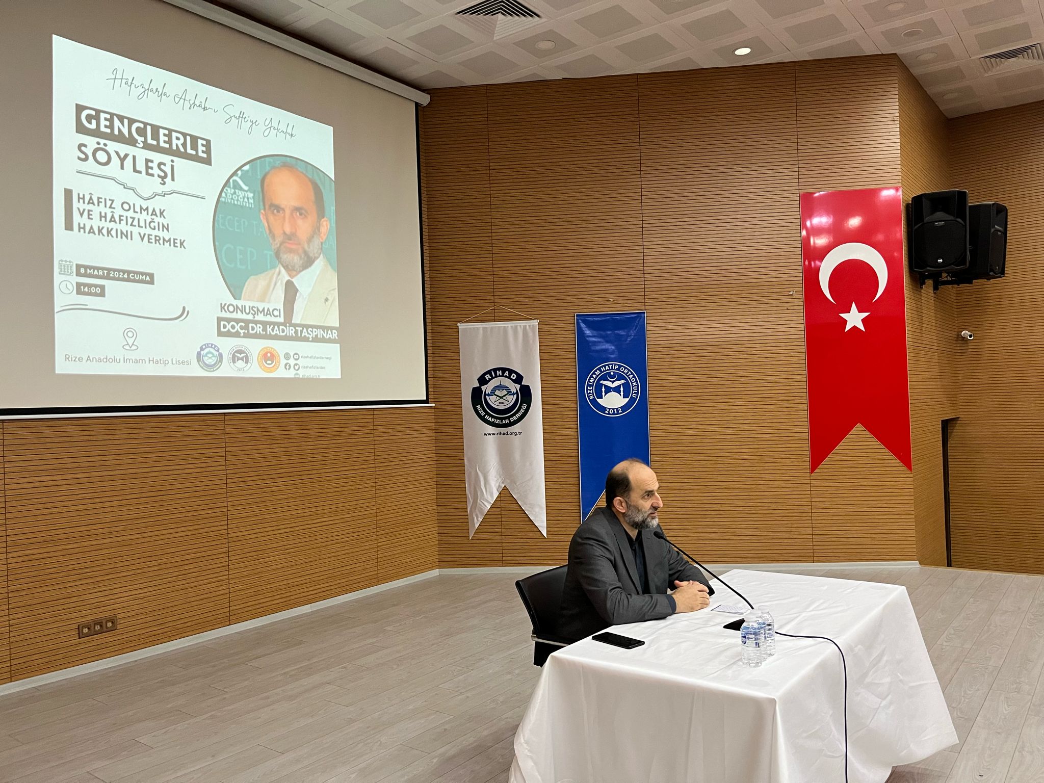 Rize Hafızlar Derneği (RİHAD) koordinasyonunda, Rize Anadolu İmam Hatip Lisesi ve Rize İmam Hatip Ortaokulu bünyesinde eğitimlerine devam eden Hafız öğrencilere yönelik "Hafız Olmak ve Hafızlığın Hakkını Vermek" konulu söyleşi gerçekleştirildi.