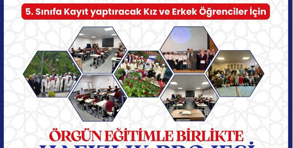 Rize İmam Hatip Ortaokulu, örgün eğitimle birlikte hafızlık yapmak isteyen 4. sınıfı bitirecek öğrenciler için "Örgün Eğitimle Birlikte Hafızlık Projesi” Programı’na öğrenci seçimi başvuruları başladı.