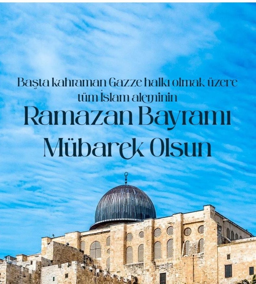 Ve şunu asla unutmayalım: Bizler insanlığın ümidiyiz! Bu azizmilletin evlatları olarak bayramı kendi adımıza değil, insanlık adına yaşayalım. Bayramımız insanlığa barış nefesi olsun, yeni bayramlar doğursun. Sevincimiz tohum olup toprağa düştüğünde yeni sevinçler yeşertsin. Huzurumuz nice huzursuzlukların çaresi; mutluluğumuz insanlığın kalbini delen acıların tesellisi olsun. Allah’ın selamı, rahmeti, bereketi, affı, afiyeti, inayeti bizlerle olsun. Ramazan Bayramımız mübarek olsun.