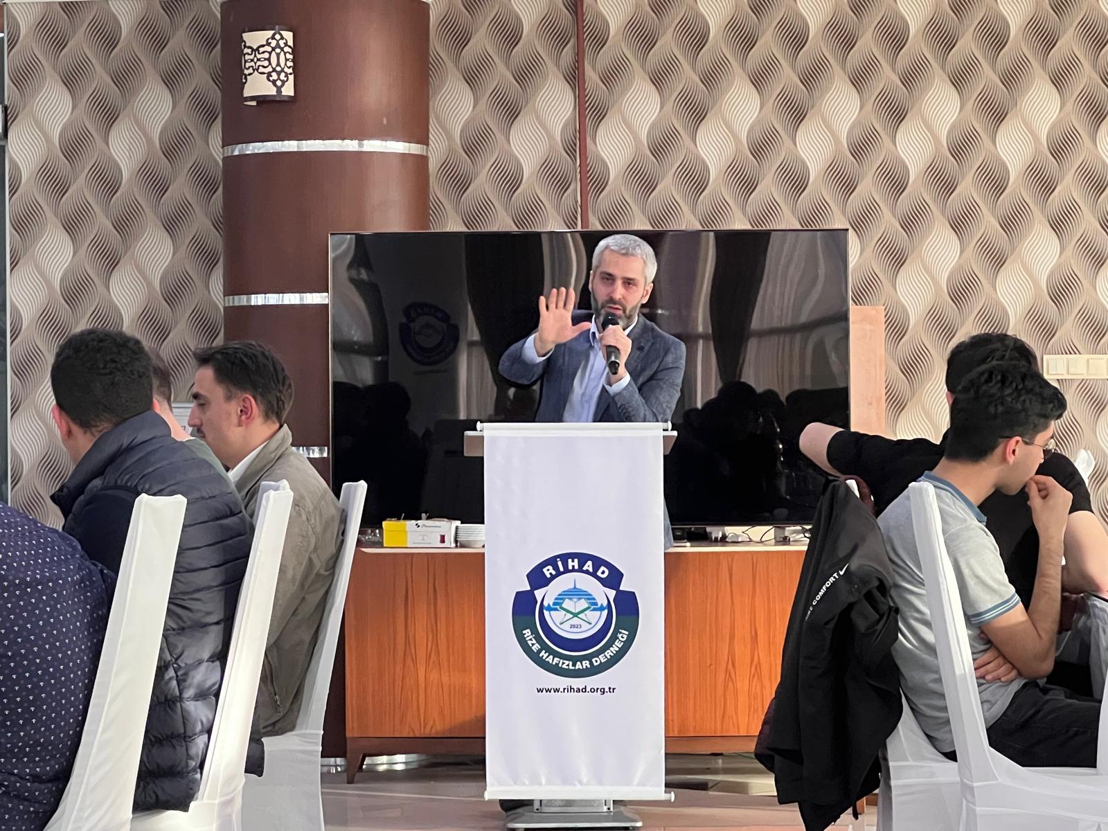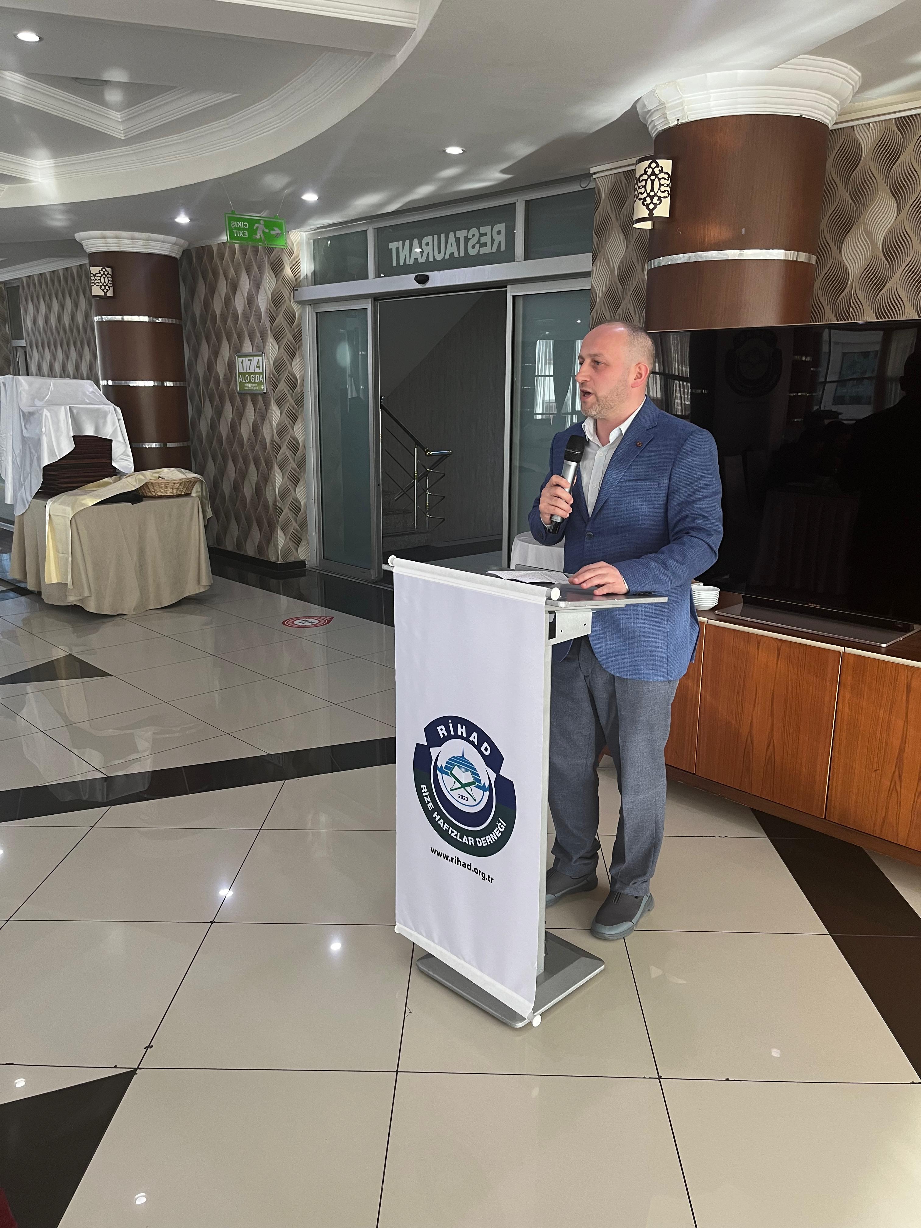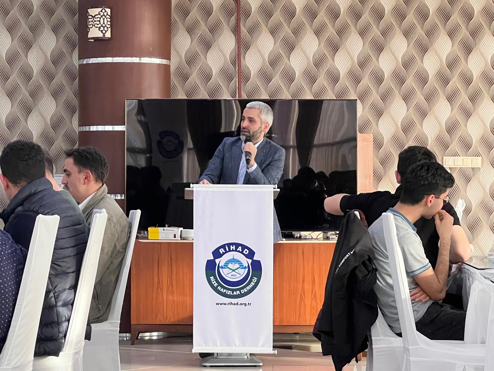 Rize Anadolu İmam Hatip Lisesi Öğrencisi Abdullah Karali’nin Kur’an-ı Kerim tilavetiyle başlayan program, Rize İmam Hatip Ortaokulu Müdürü ve Rihad Başkan Yardımcısı Zeki Kuvel’in “Örgün Eğitimle Birlikte Hafızlık Projesi” ve Dernek çalışmaları hakkında bilgi vermesiyle devam etti.