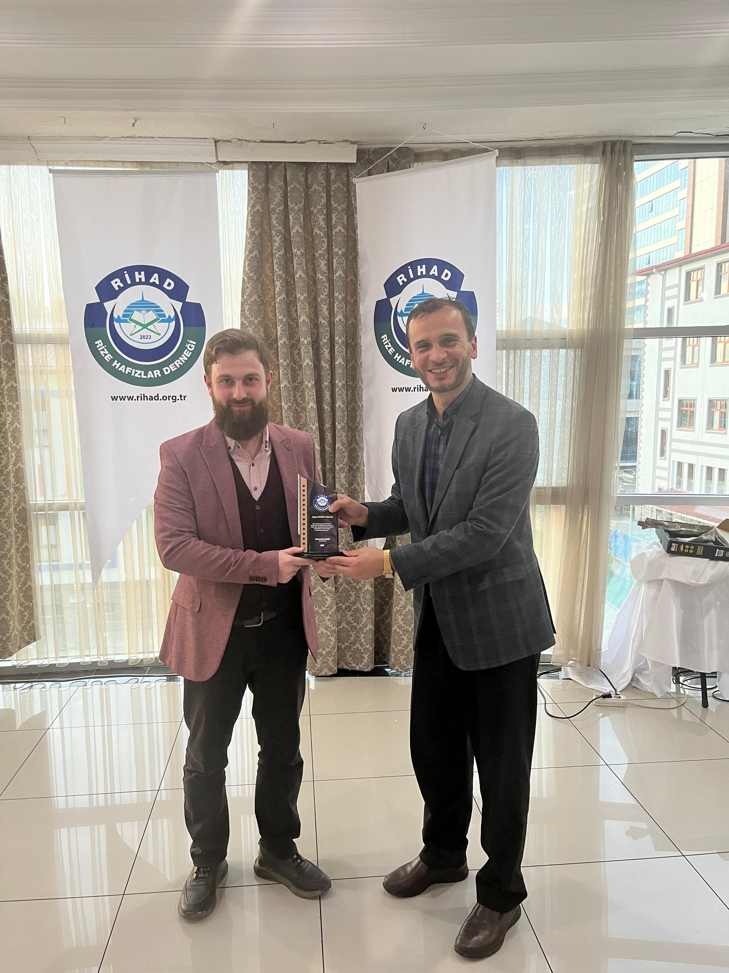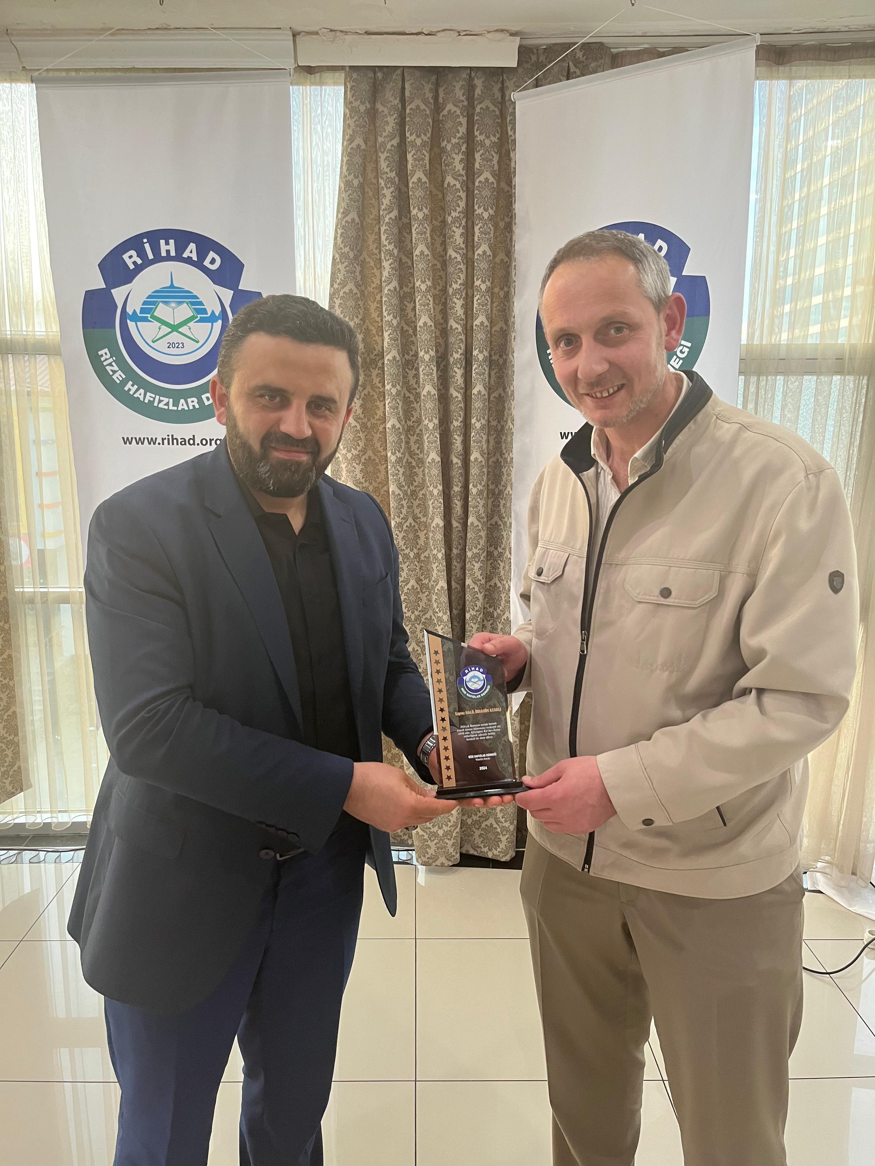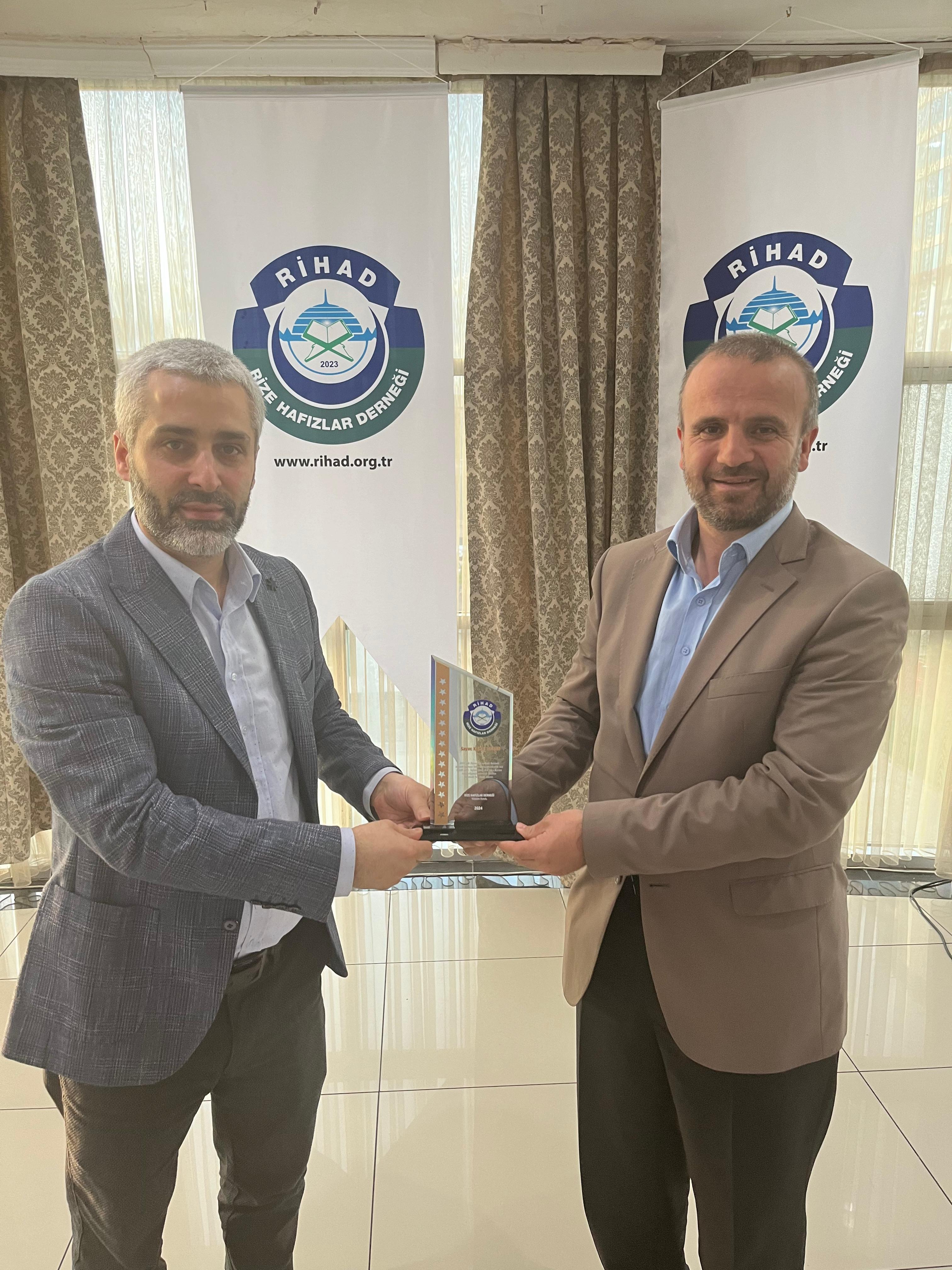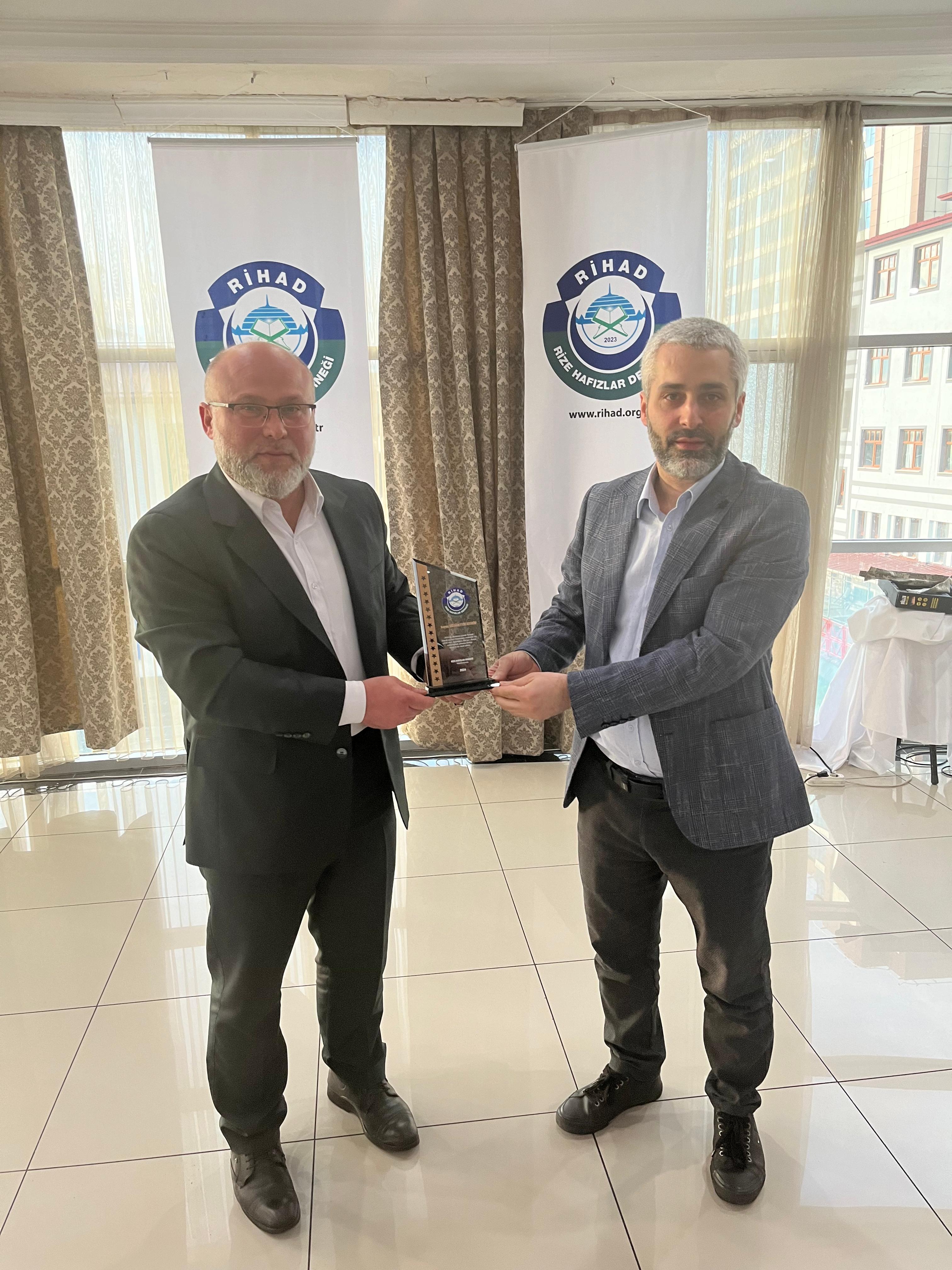 Rize Hafızlar Derneği (RİHAD) tarafından, Rize Merkez ve İlçelerinde bu yıl Ramazan ayında belirli Camilerde Hatimle Teravih Namazı kıldıran İlçe Müftüleri, Kur’an Kursu Öğreticileri, İmam Hatipler ve İmam Hatip Lisesi Hafız Öğrencilerine RİHAD Yönetim Kurulu üyeleri tarafından Plaket takdim edildi.