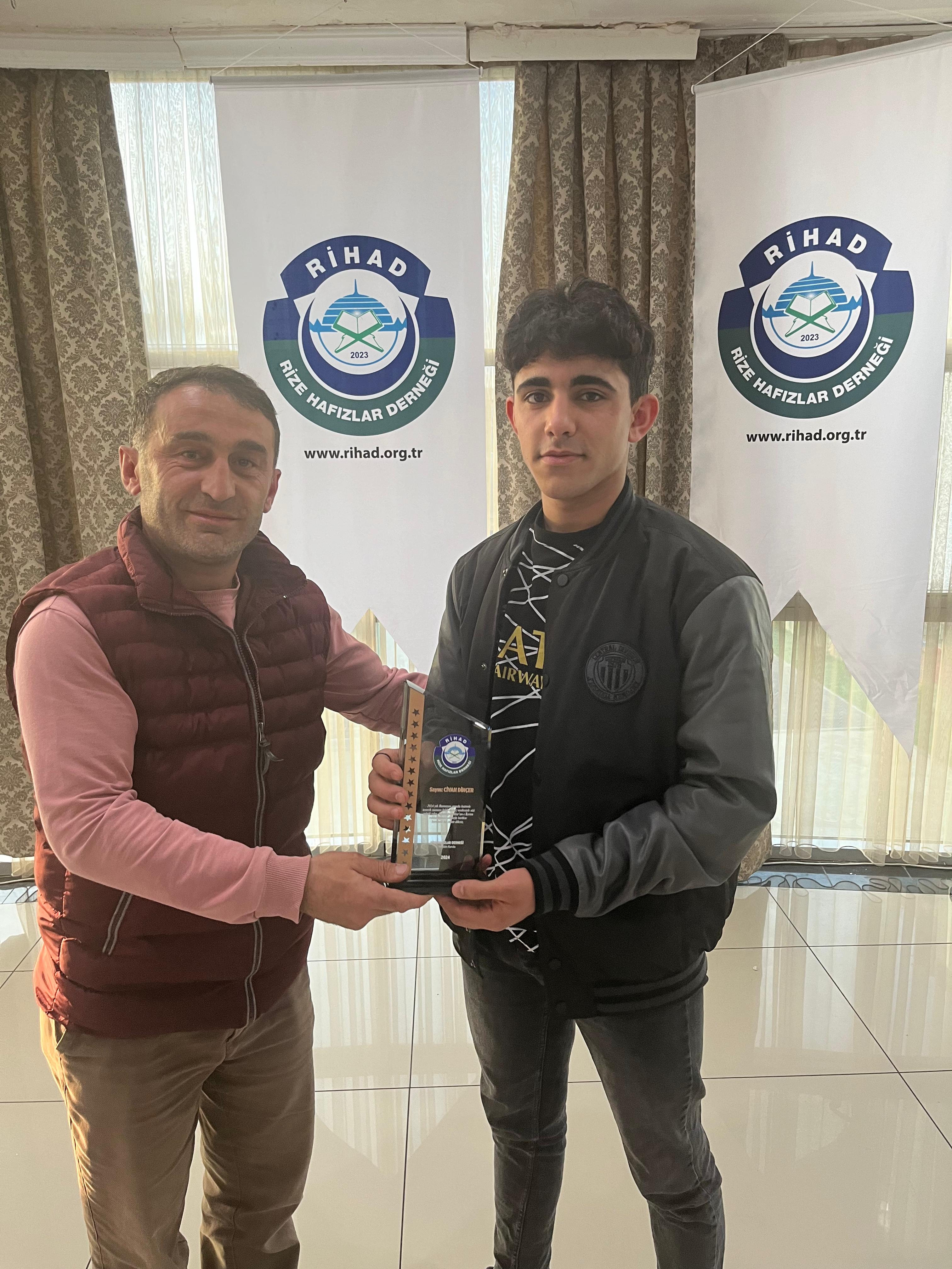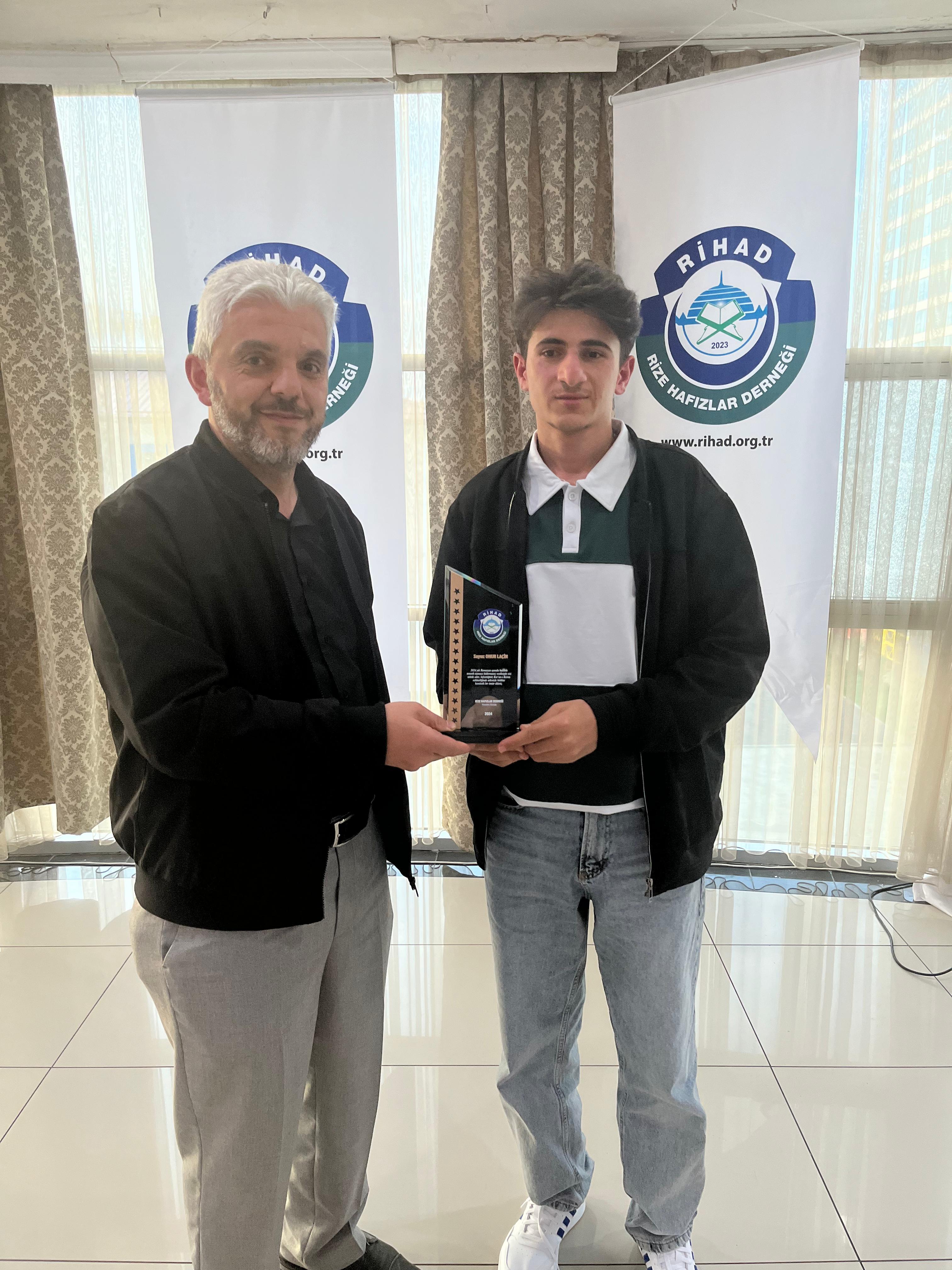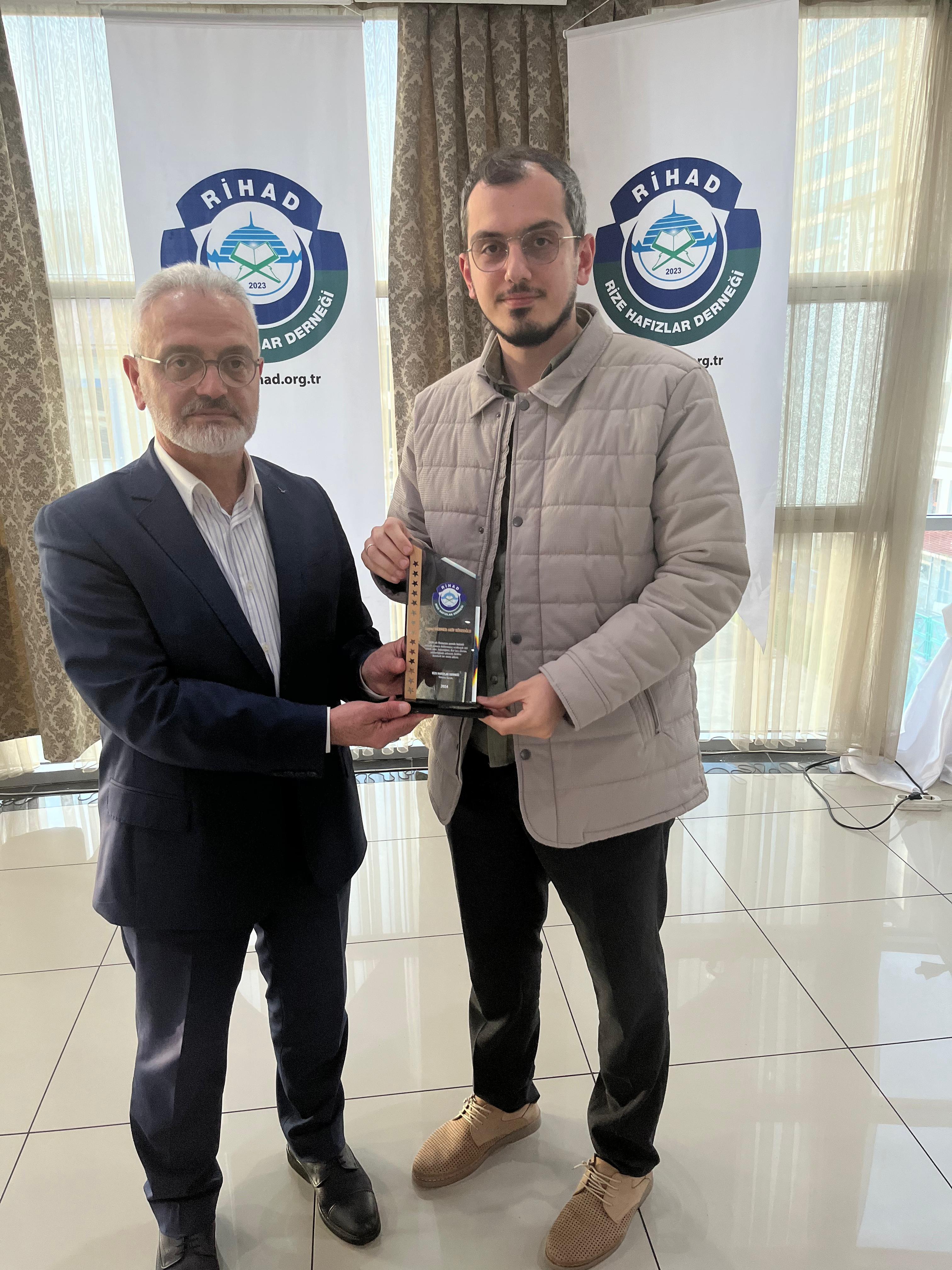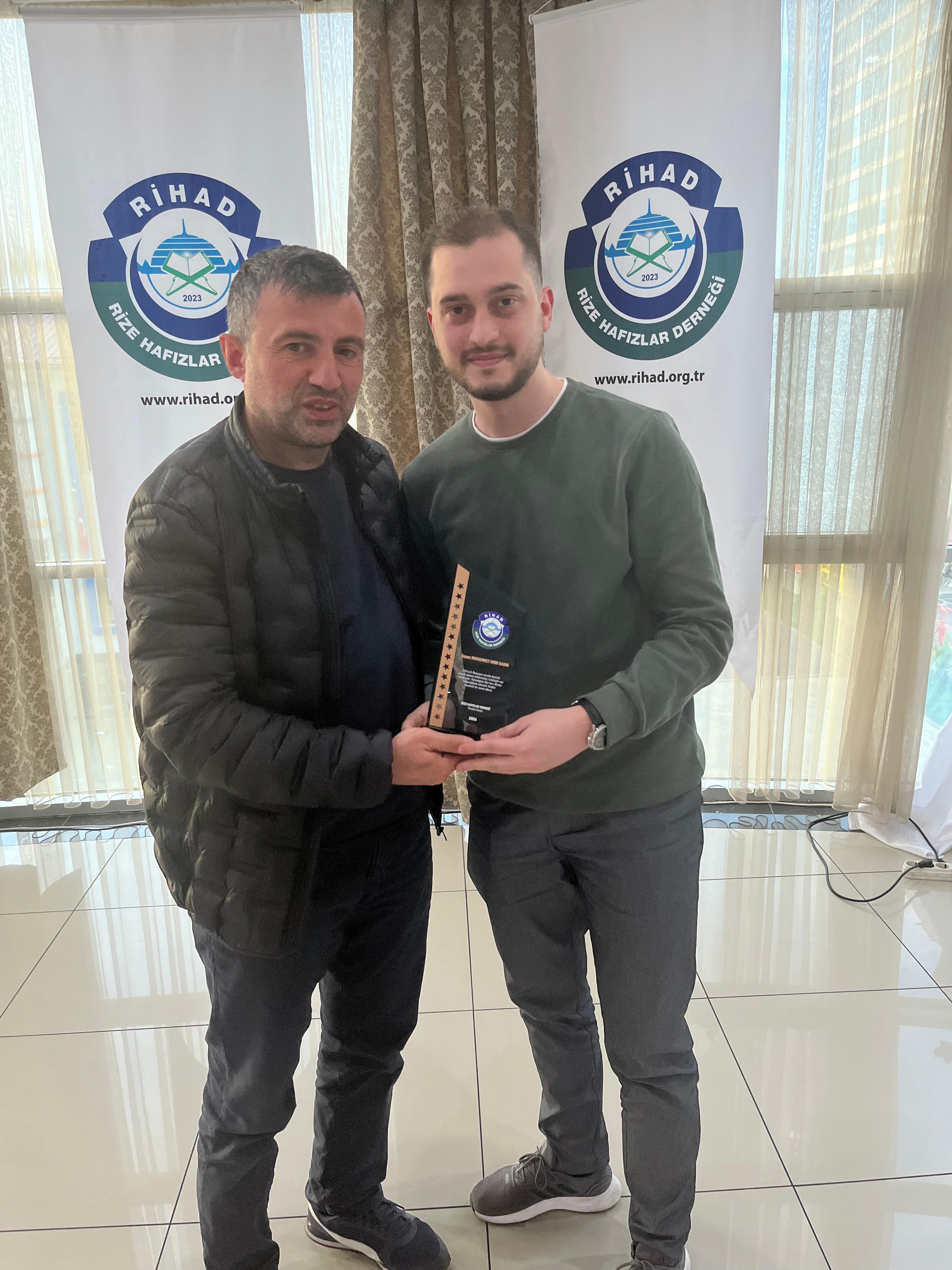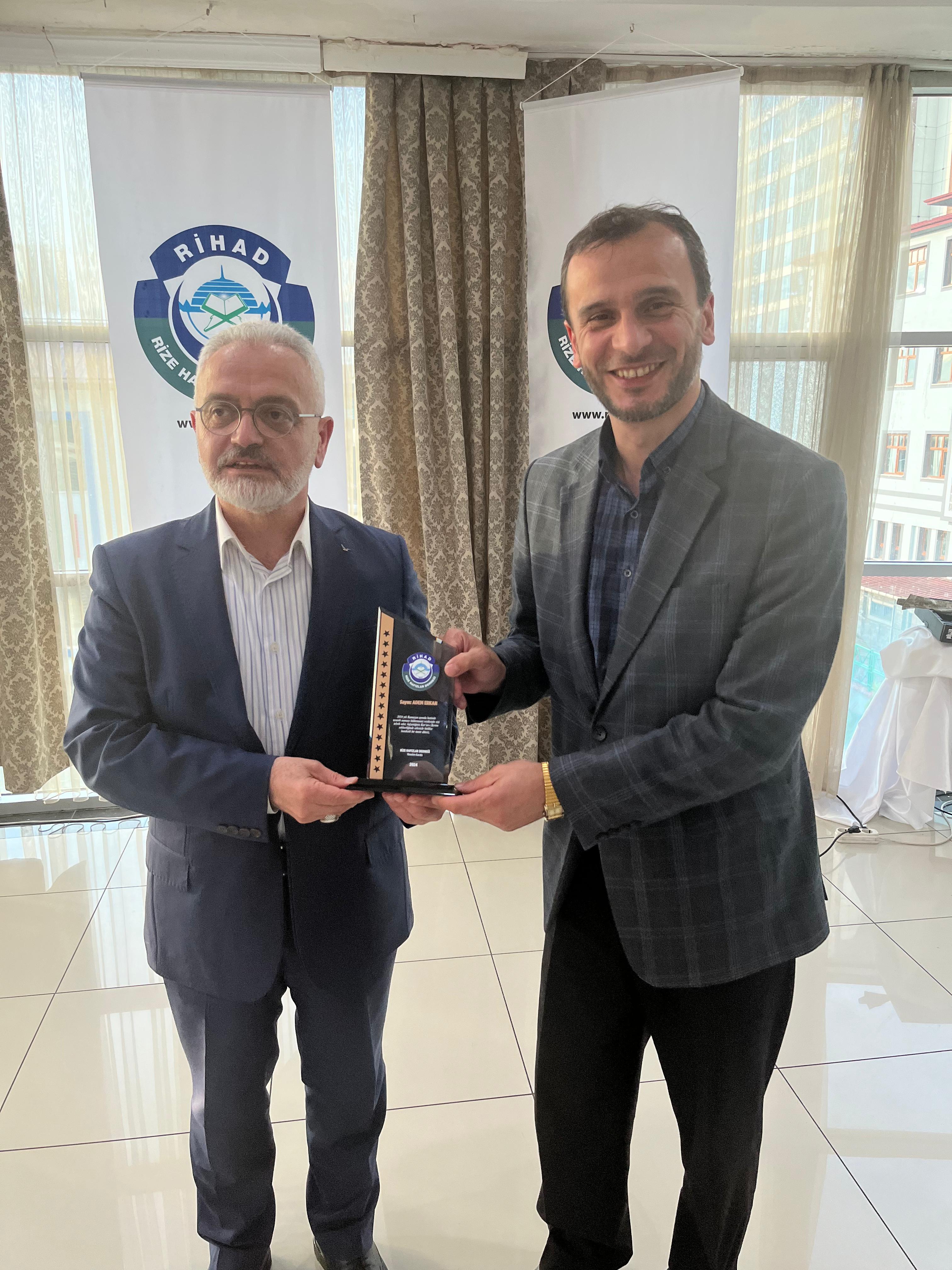 Rize Hafızlar Derneği (RİHAD) tarafından, Rize Merkez ve İlçelerinde bu yıl Ramazan ayında belirli Camilerde Hatimle Teravih Namazı kıldıran İlçe Müftüleri, Kur’an Kursu Öğreticileri, İmam Hatipler ve İmam Hatip Lisesi Hafız Öğrencilerine RİHAD Yönetim Kurulu üyeleri tarafından Plaket takdim edildi.