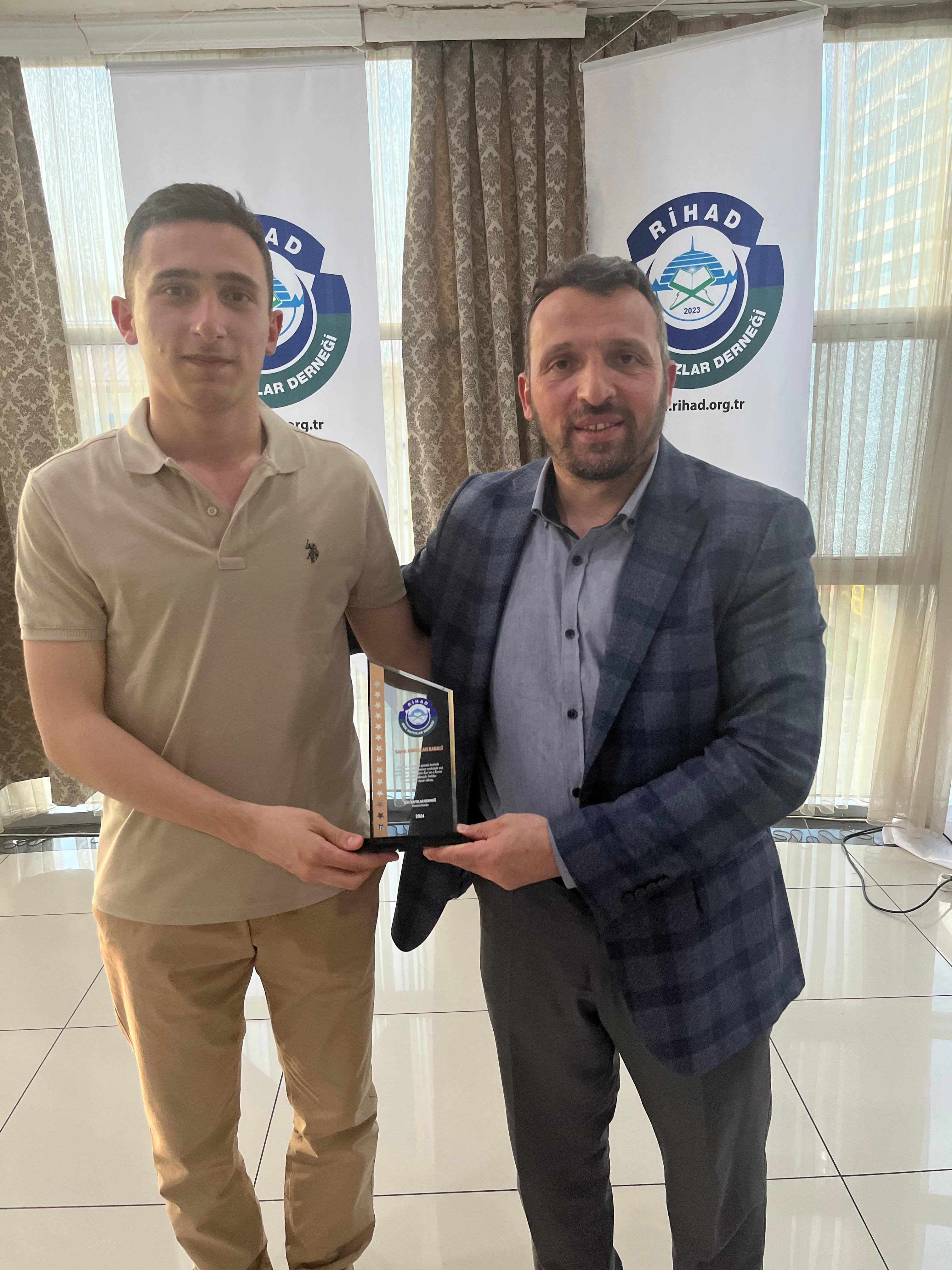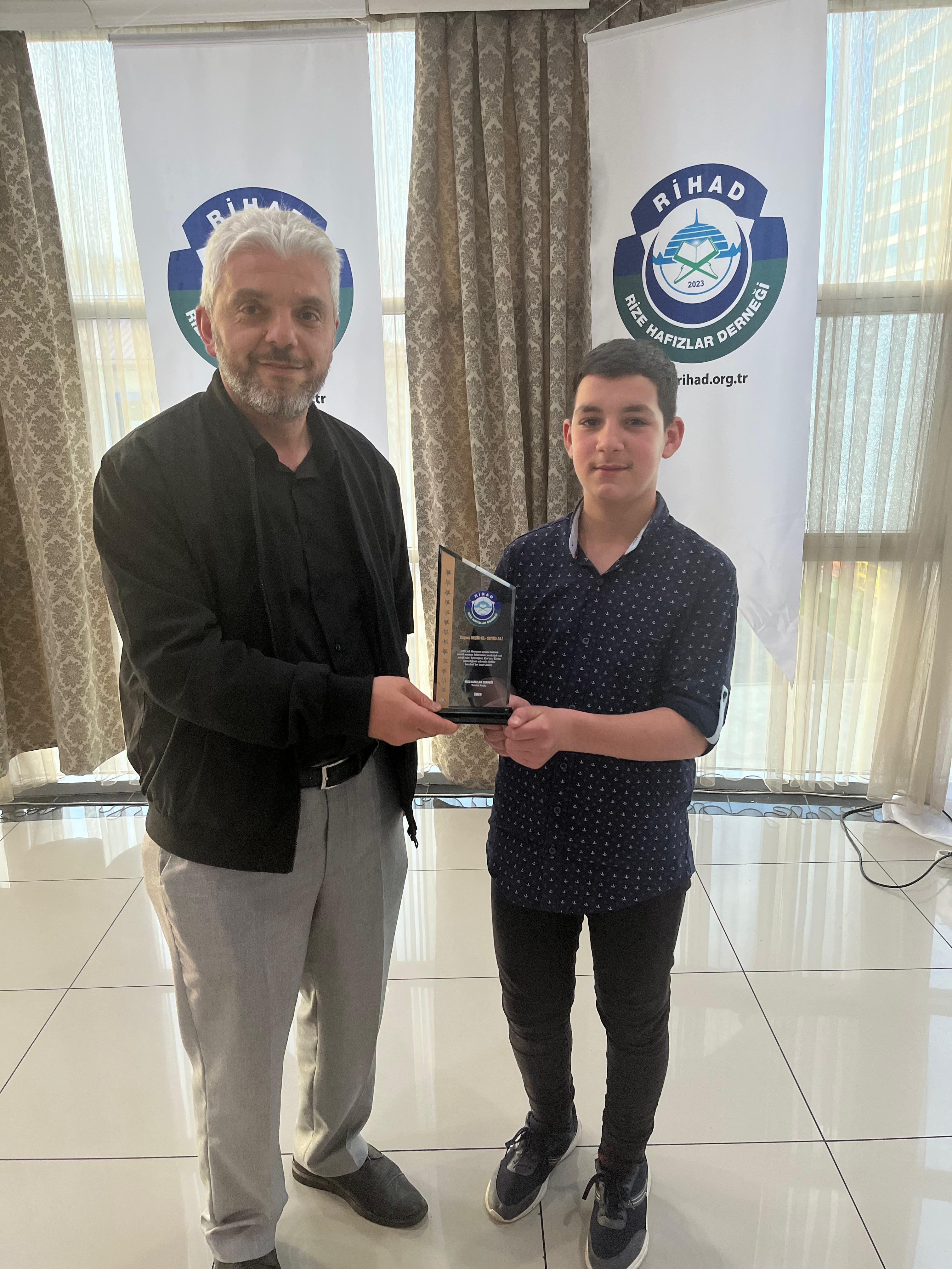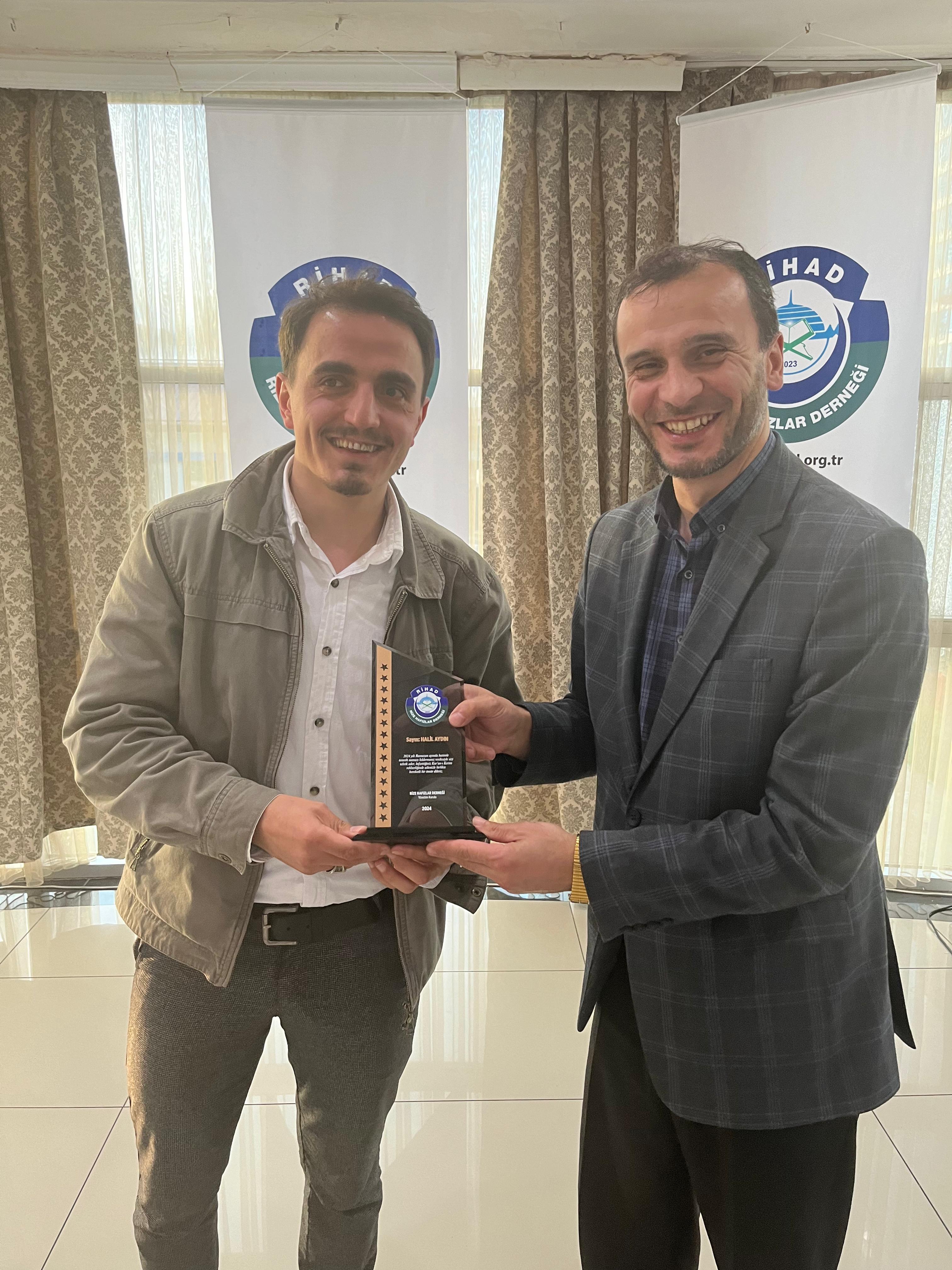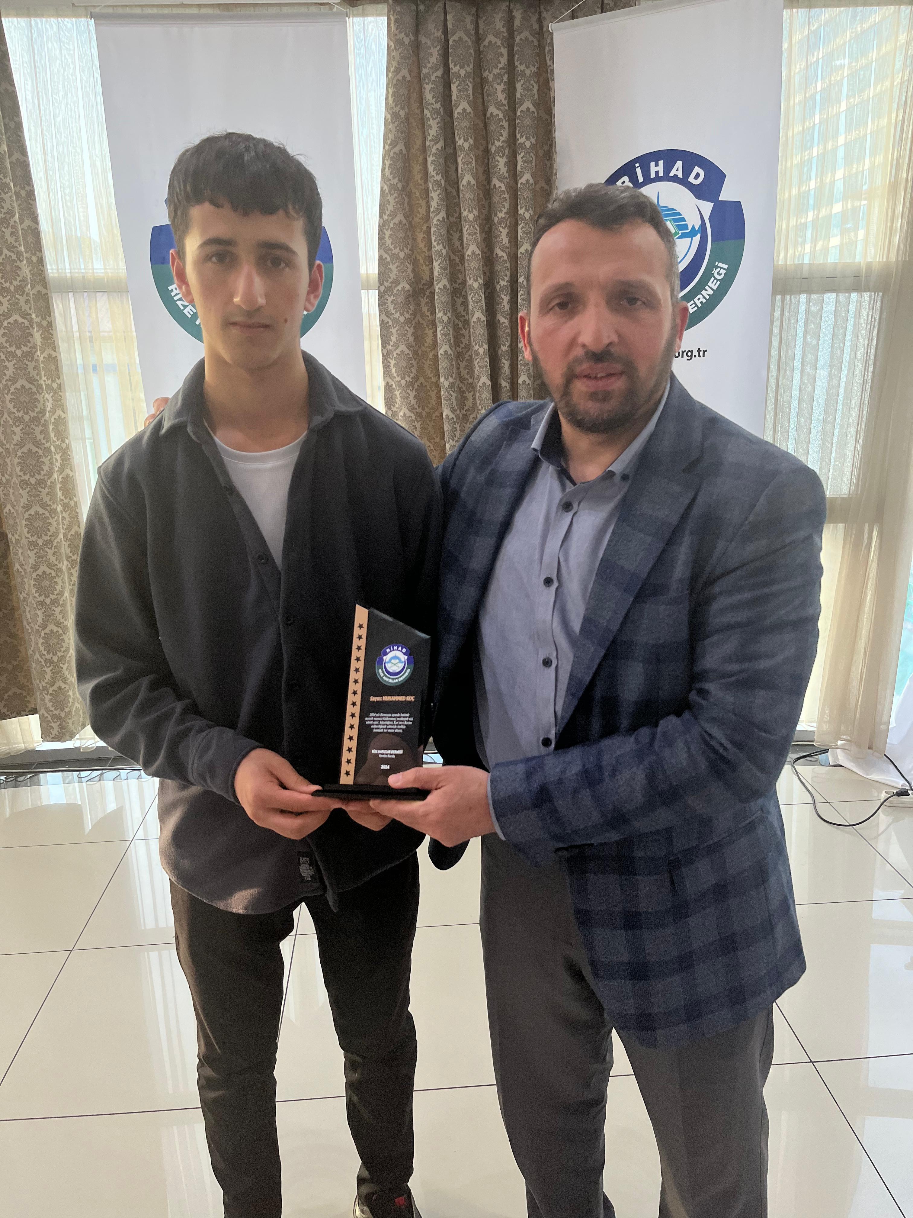 Rize Hafızlar Derneği (RİHAD) tarafından, Rize Merkez ve İlçelerinde bu yıl Ramazan ayında belirli Camilerde Hatimle Teravih Namazı kıldıran İlçe Müftüleri, Kur’an Kursu Öğreticileri, İmam Hatipler ve İmam Hatip Lisesi Hafız Öğrencilerine RİHAD Yönetim Kurulu üyeleri tarafından Plaket takdim edildi.