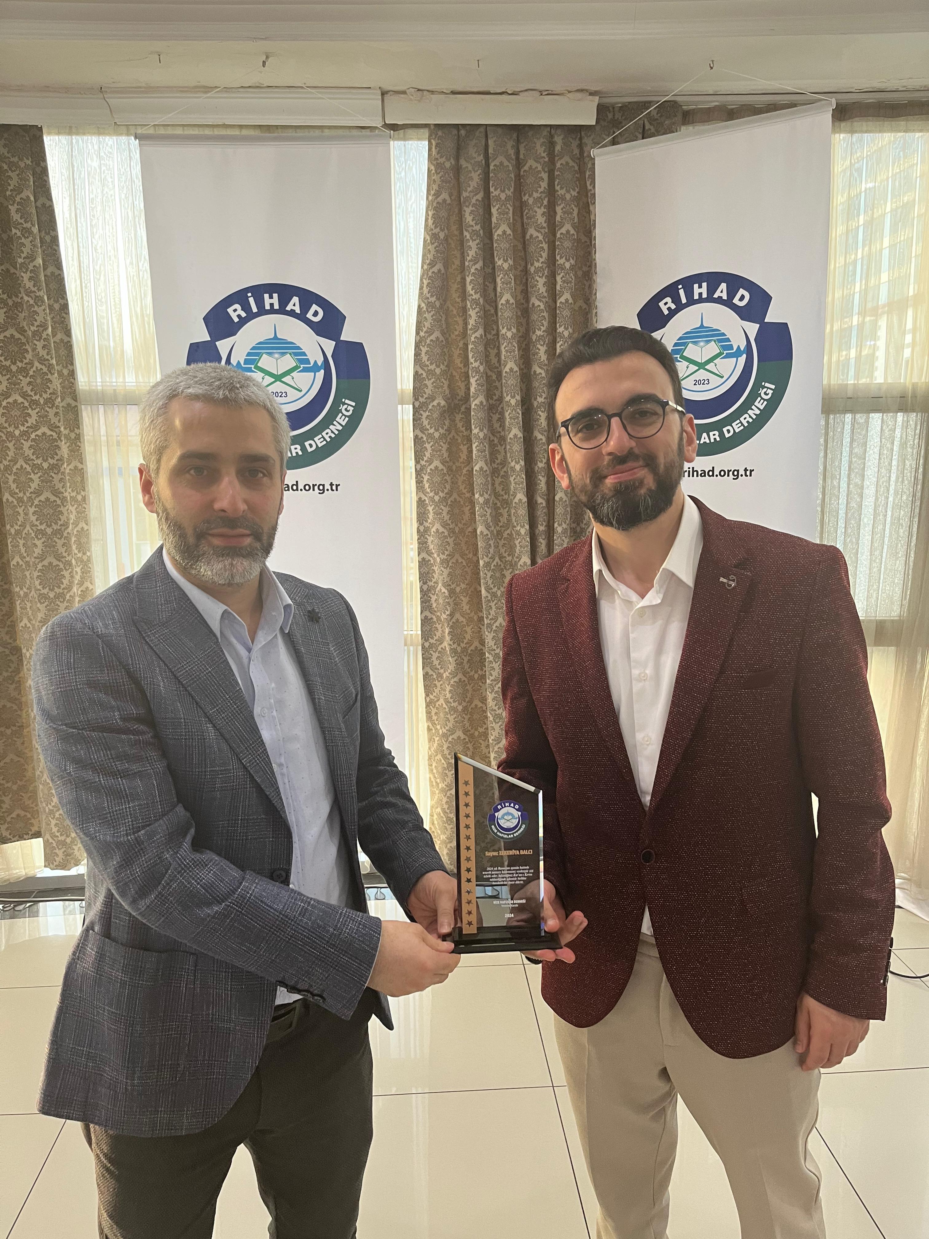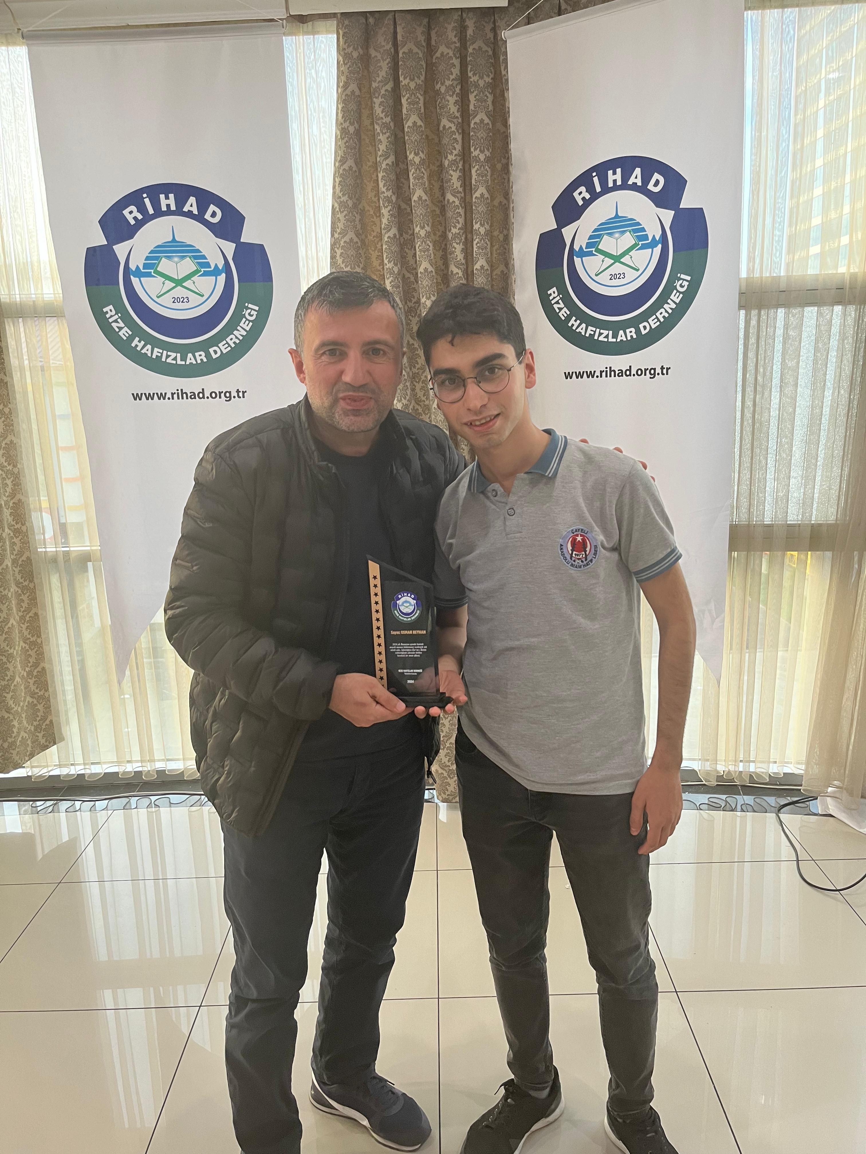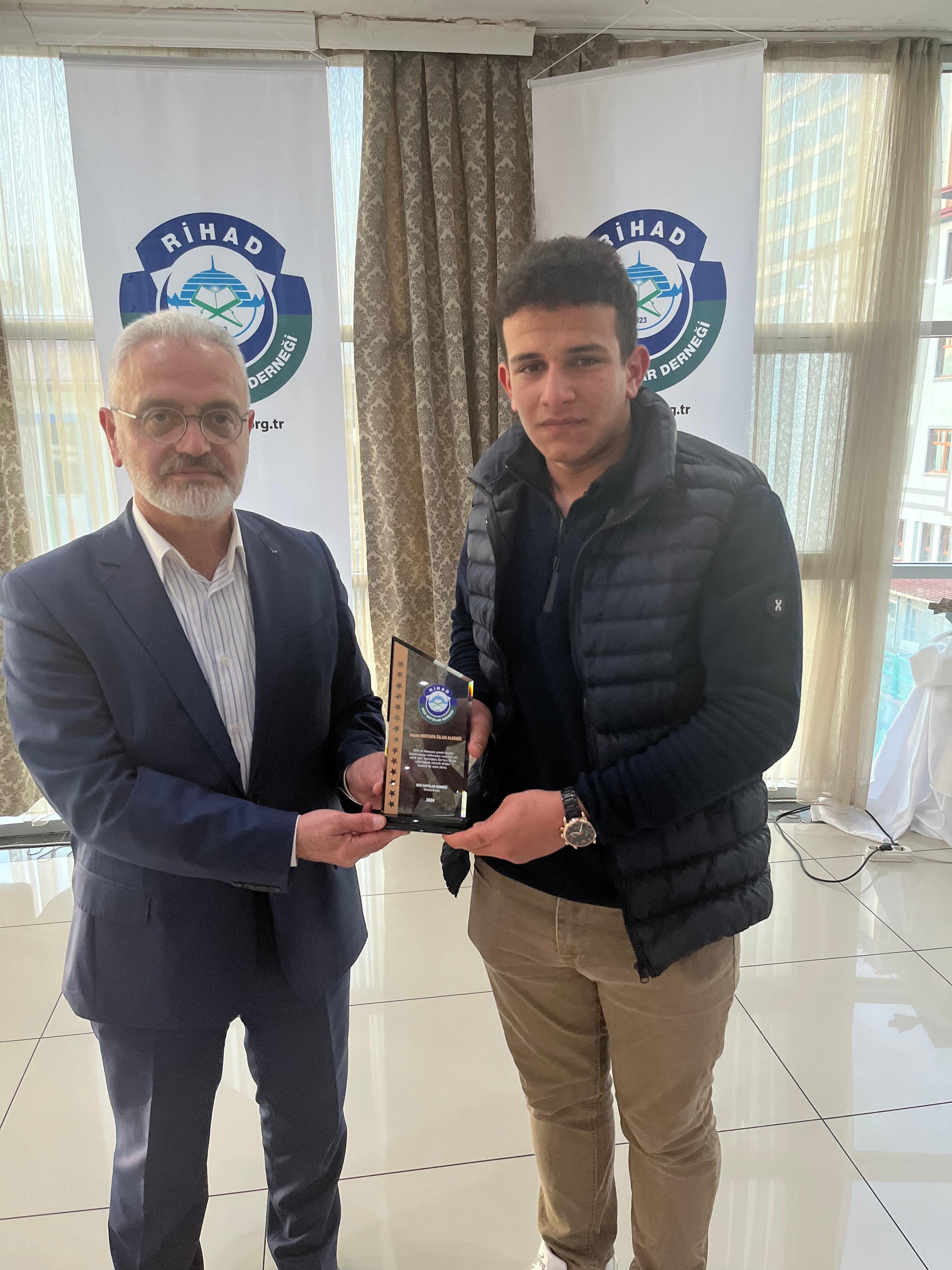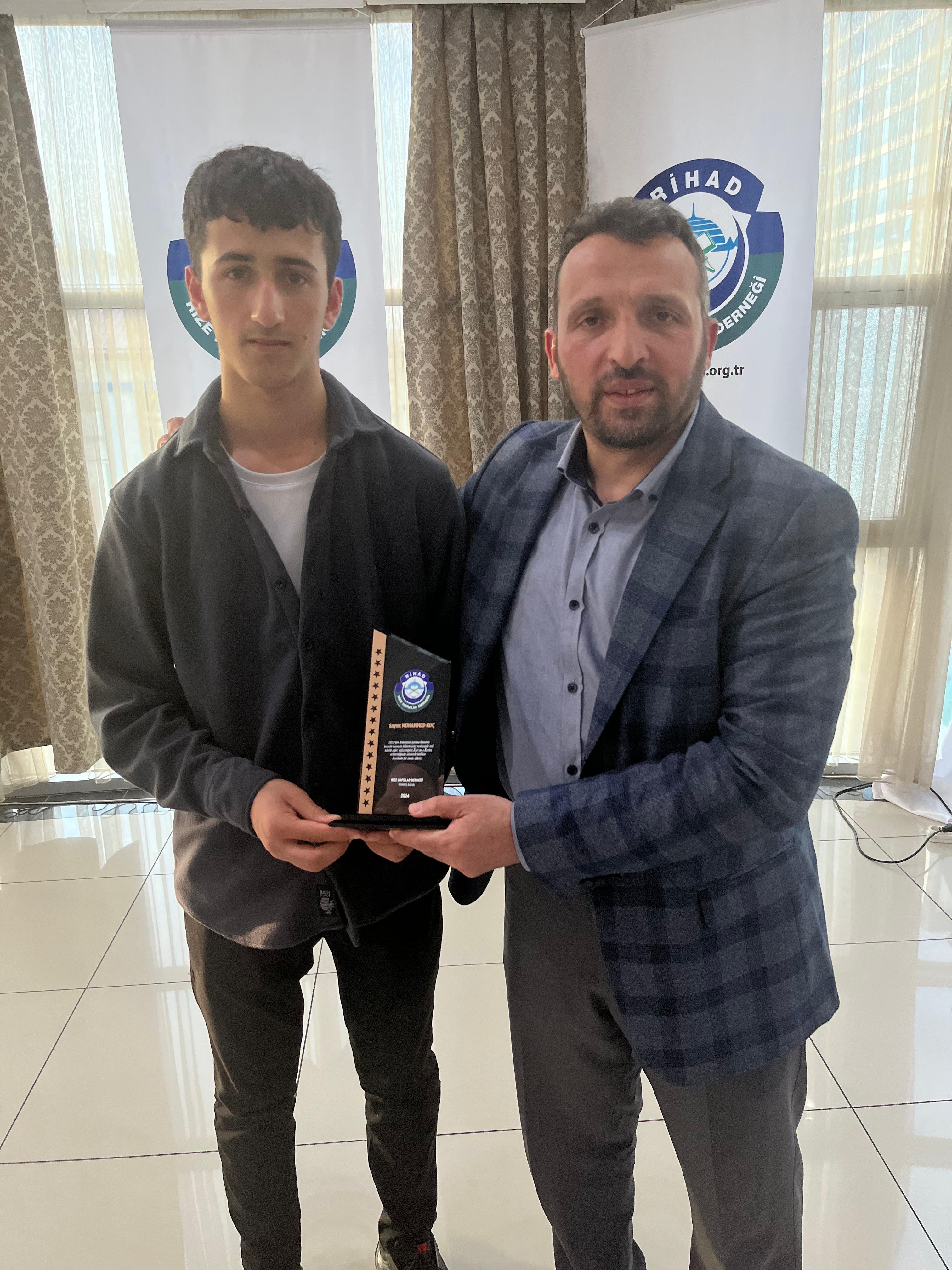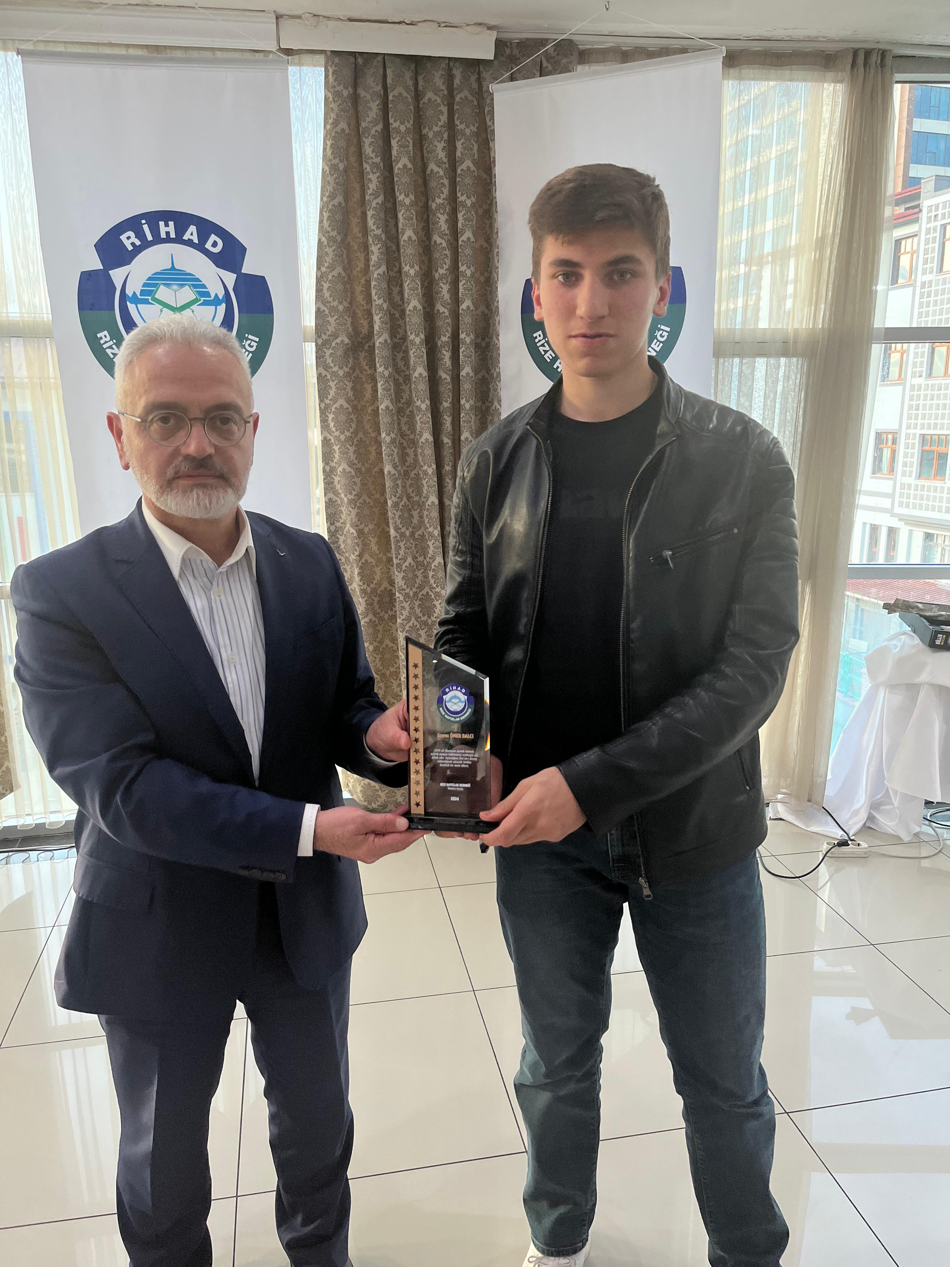 Rize Hafızlar Derneği (RİHAD) tarafından, Rize Merkez ve İlçelerinde bu yıl Ramazan ayında belirli Camilerde Hatimle Teravih Namazı kıldıran İlçe Müftüleri, Kur’an Kursu Öğreticileri, İmam Hatipler ve İmam Hatip Lisesi Hafız Öğrencilerine RİHAD Yönetim Kurulu üyeleri tarafından Plaket takdim edildi.