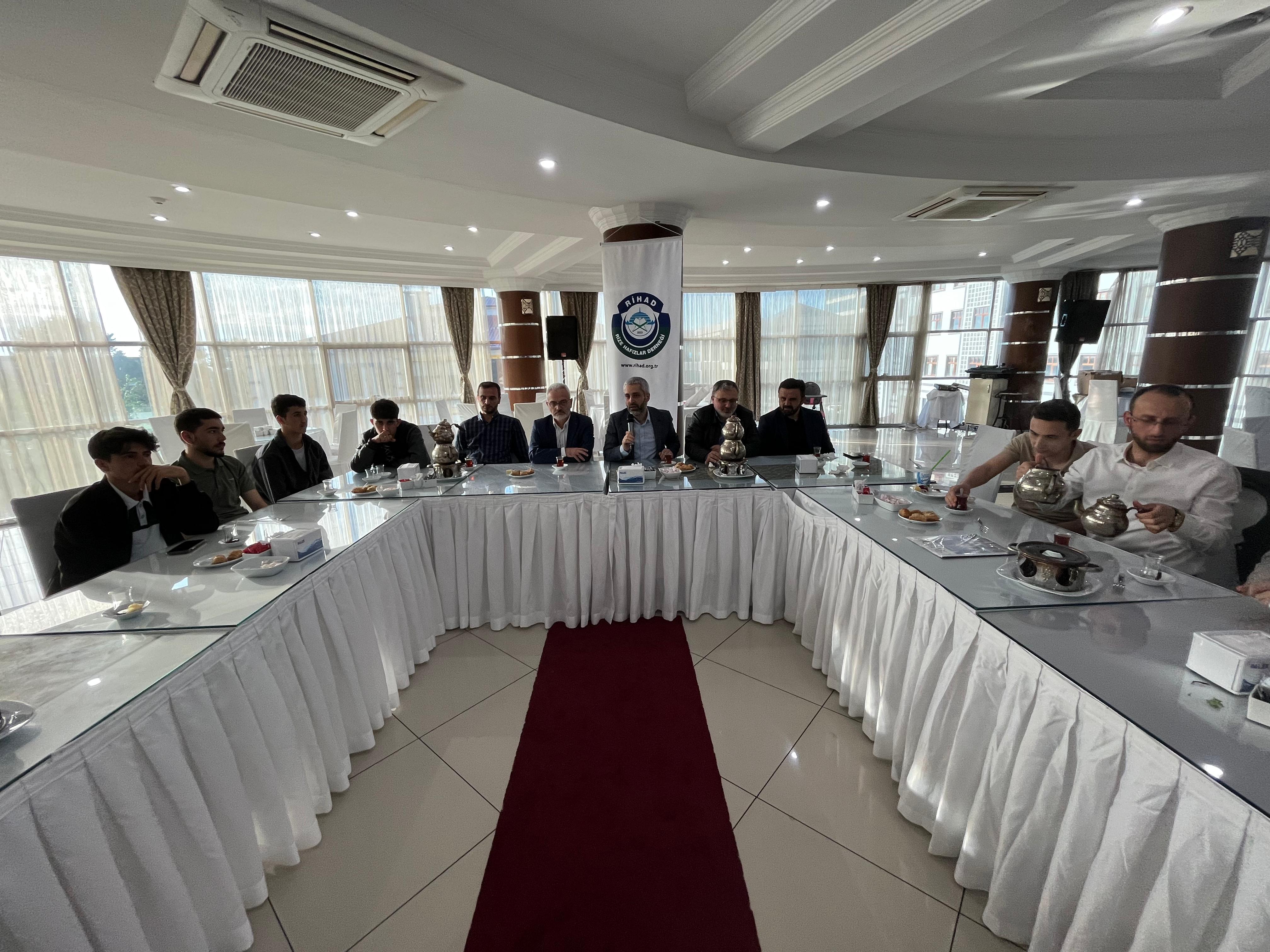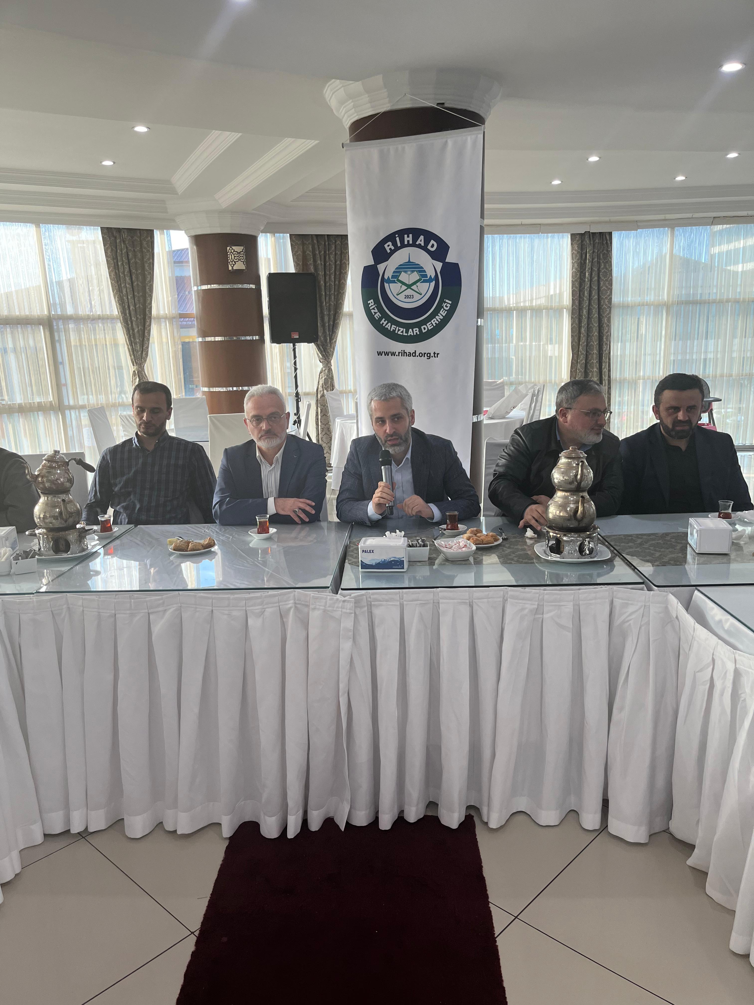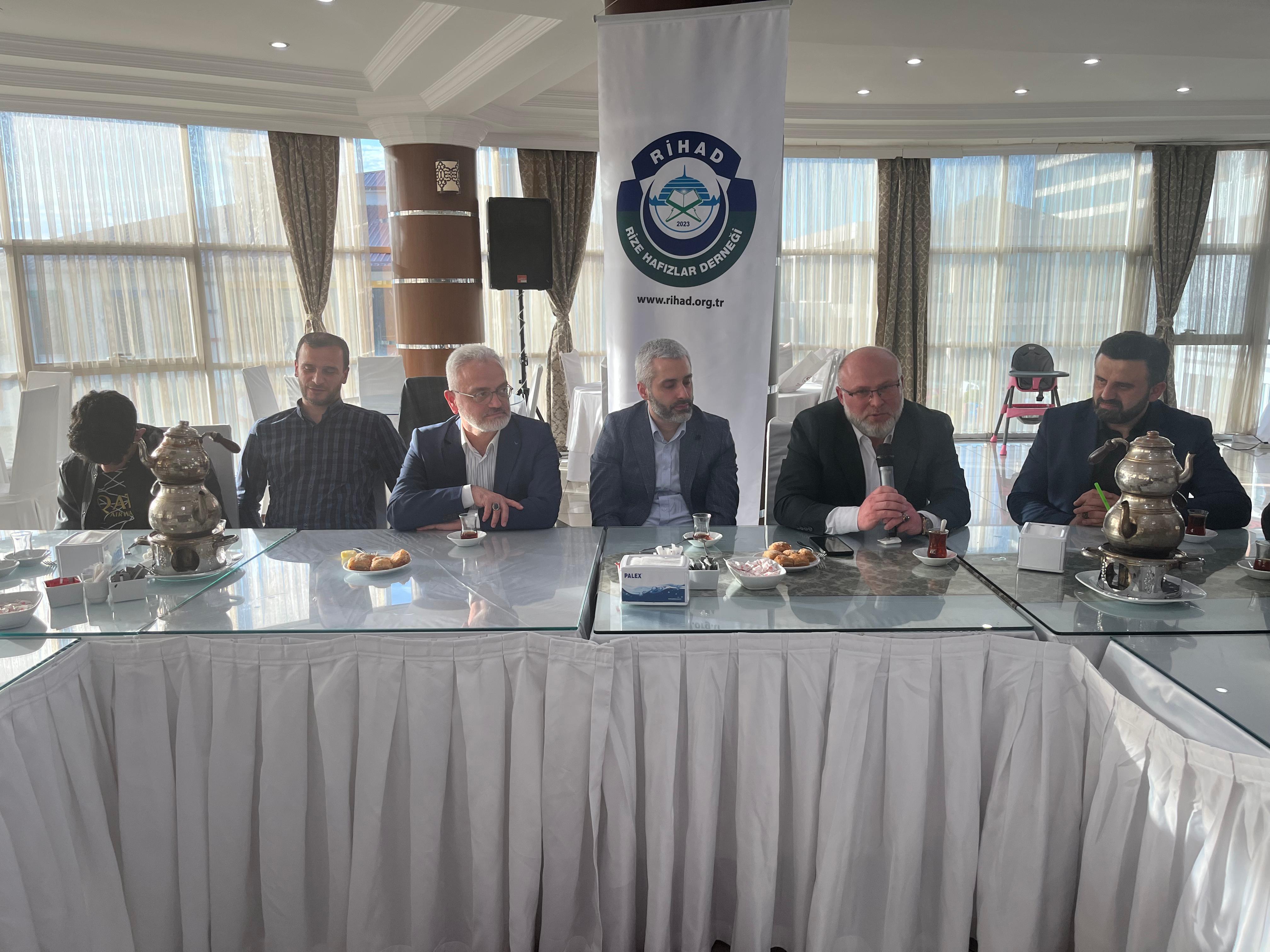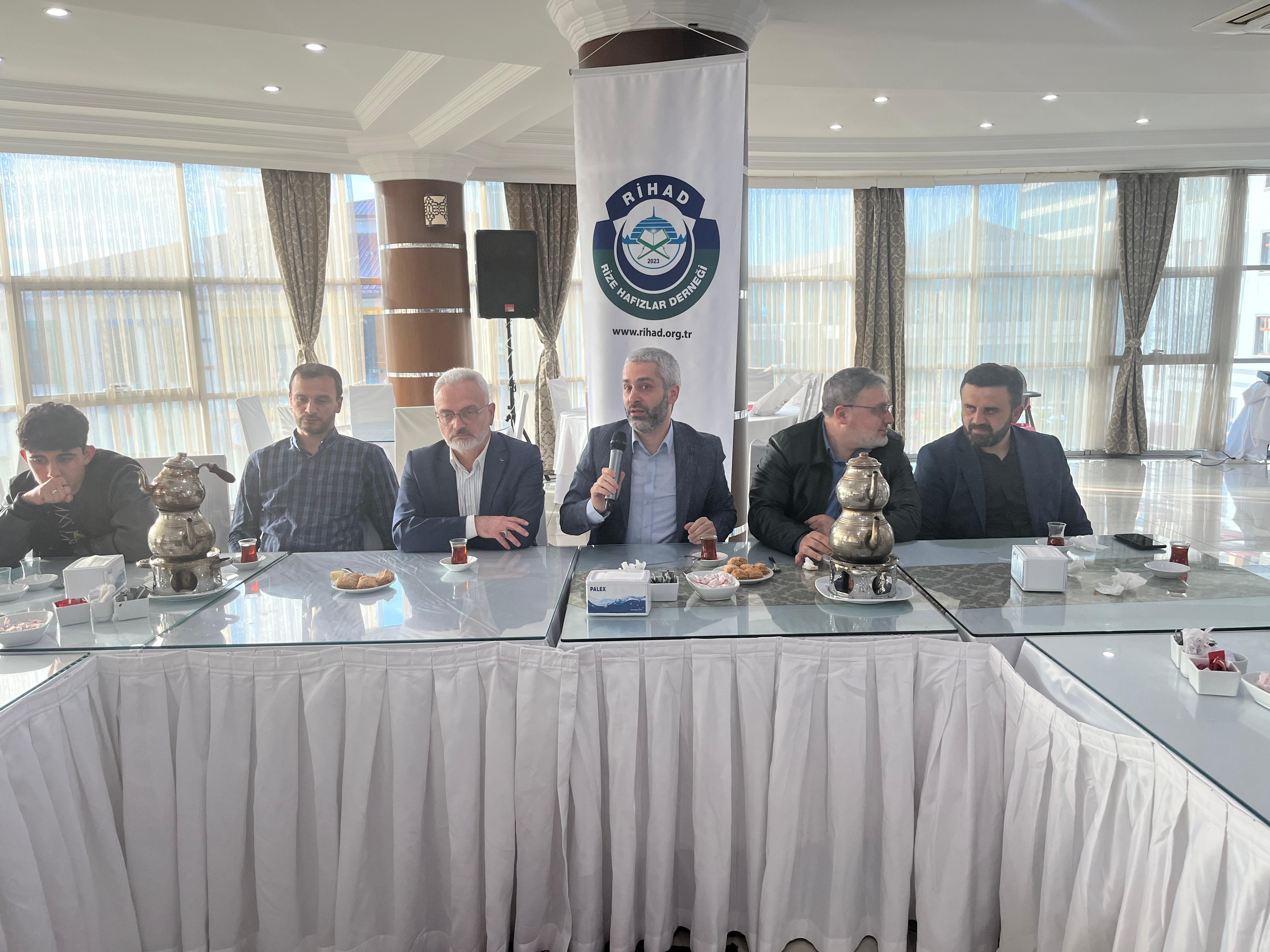 Kur'an-ı Kerim'in ilk hafızı Hz. Peygamber’den günümüze 14 asırlık Hafızlık zincirinin halkası olmakla şereflenen salondaki tüm hafızları selamlayarak konuşmasına başlayan Rize Hafızlar Derneği (Rihad) Başkanı Mustekim Kaba ise, "Rize Hafızlar Derneğinin amacının, Kur'ân-ı Kerimi öğrenen, öğreten, muhtevasına vakıf olmaya çalışan, bu minvalde hafızlık yapan gençlerin yaşadığı topraklara daha duyarlı, ümmet bilinci yüksek, hedefleri büyük, öz güven sahibi ve çevresine güzel örnek olabilen gençler olarak yetişmelerine katkıda bulunmaktır.” dedi.