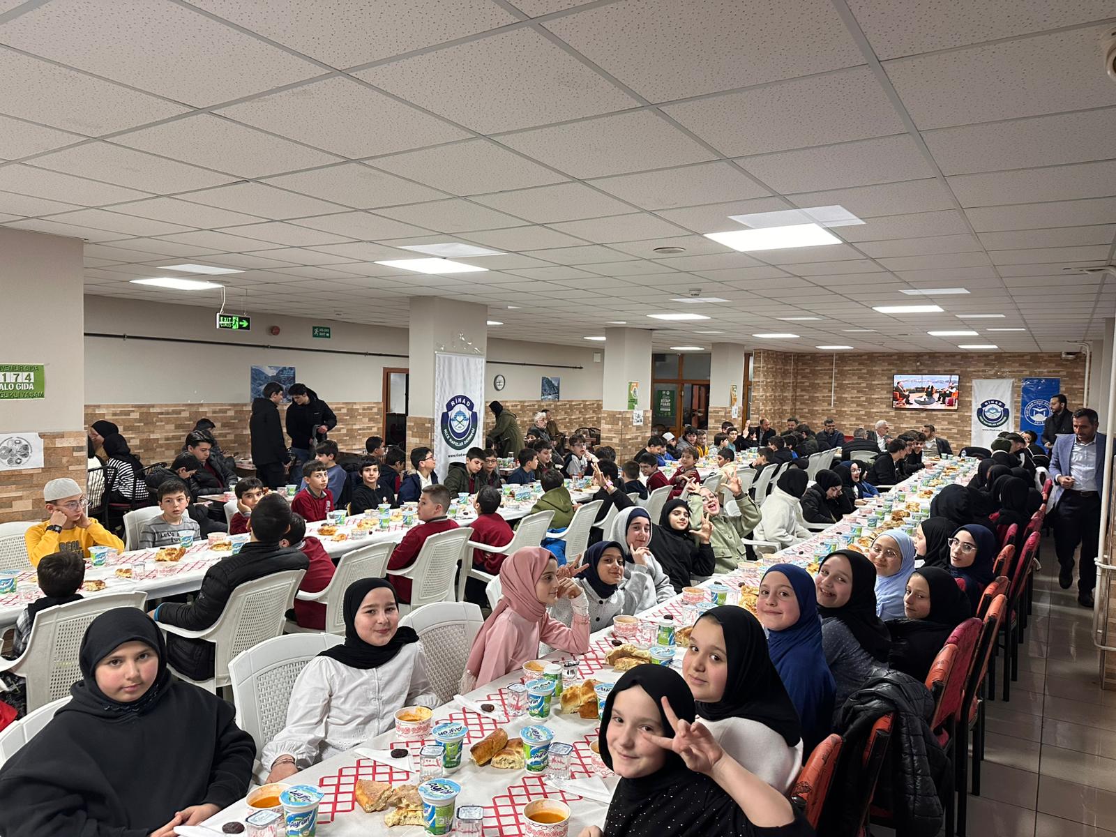 Yaklaşık 200 hafız ve hafız adayının doldurduğu yemekhanede iftar vakti dualarla karşılandı. Oruçların açılmasının ardından samimi sohbetler eşliğinde Ramazan’ın manevi coşkusu paylaşıldı.